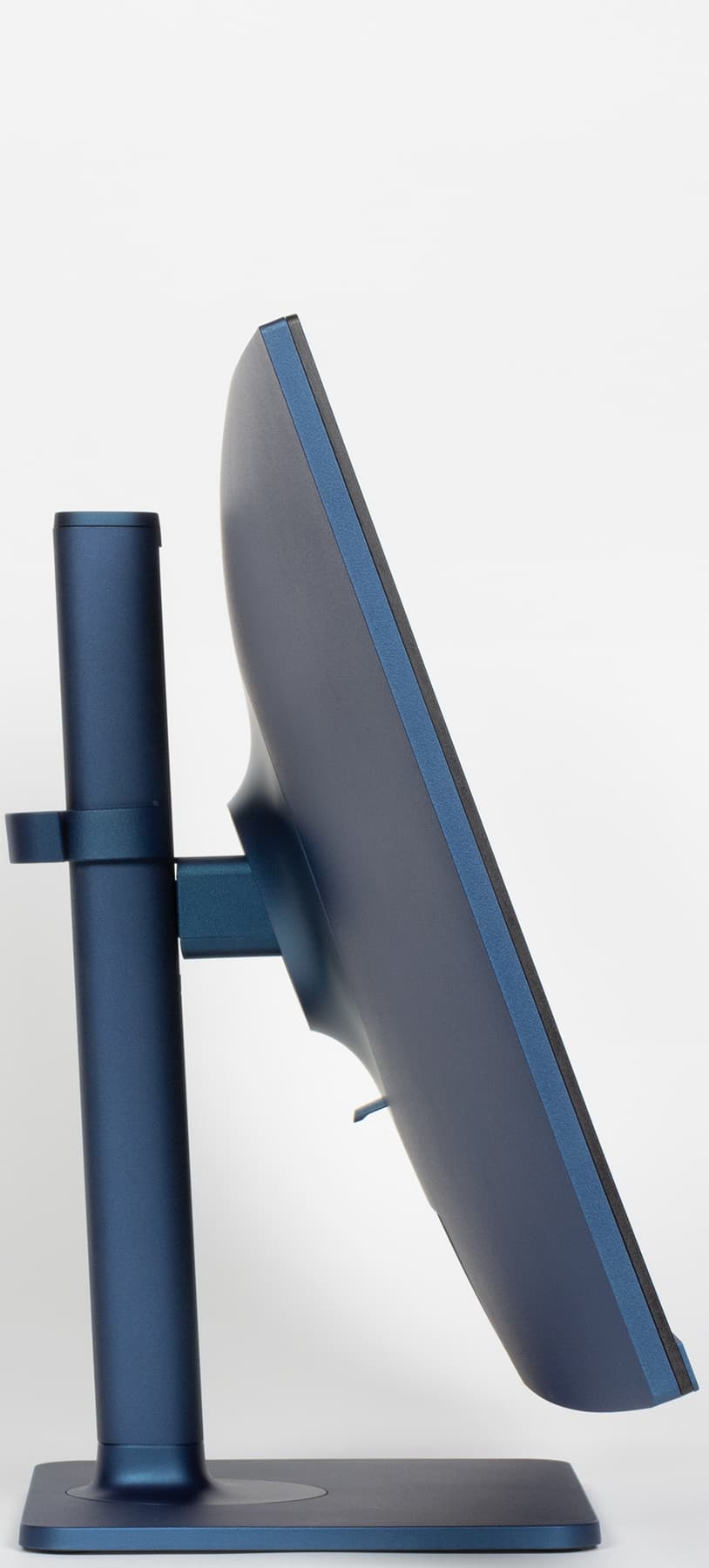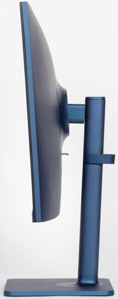 Стойка имеет фиксированную высоту, но подпираемый пружиной механизм со стальным рельсовым шариковым подшипником обеспечивает вертикальное перемещение узла, на который крепится блок экрана. Штатная подставка позволяет немного наклонить блок экрана вперед, отклонить назад, приподнять-опустить, повернуть вправо-влево и перевернуть в портретную ориентацию по и против часовой стрелки.