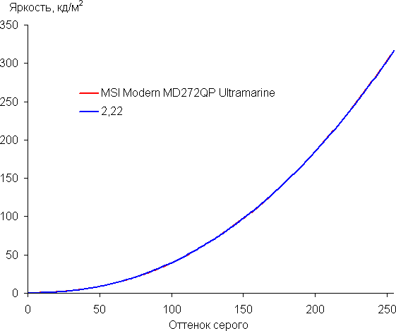 Аппроксимация полученной гамма-кривой дала показатель 2,22, что очень близко к стандартному значению 2,2. При этом реальная гамма-кривая мало отклоняется от аппроксимирующей степенной функции: