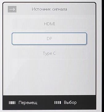Разъемы в нише расположены очень тесно, то есть в принципе, все можно подключить, за исключением двух пухлых флешек в оба USB-порта сразу, но такая теснота все же добавляет неудобств. Монитор имеет три цифровых входа, поддерживающих прием видеосигнала, — DisplayPort, HDMI и USB-C. Выбор входа осуществляется в основном меню установок или в меню быстрого доступа (если оно настроено на одну из пользовательских кнопок). Есть отключаемая функция автоматического поиска сигнала на входах. Цифровые аудиосигналы, передаваемые перечисленные выше входы, после преобразования в аналоговый вид выводятся на встроенные громкоговорители или на выход на наушники.