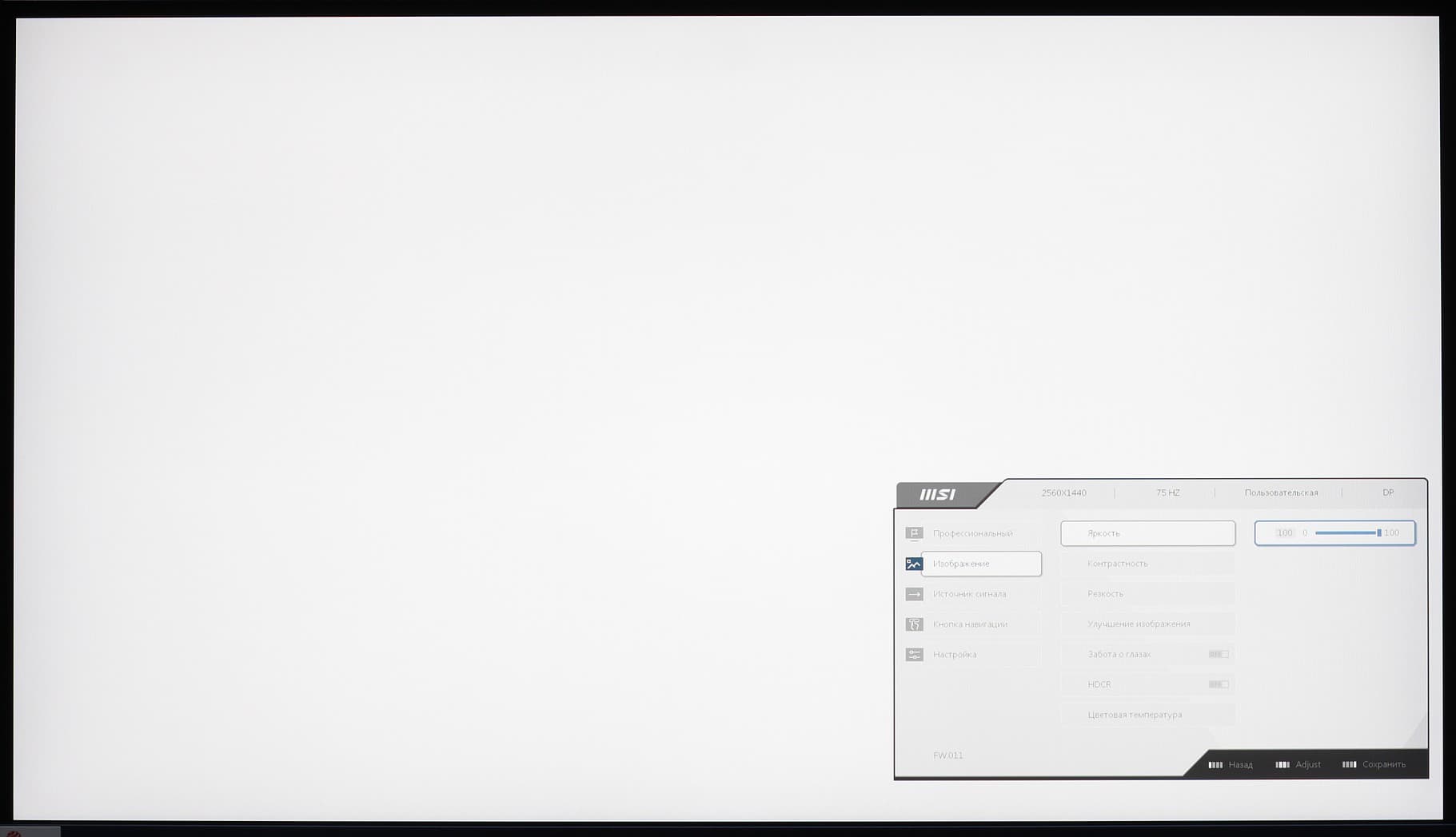 Измерение равномерности черного и белого полей, яркости и энергопотребления