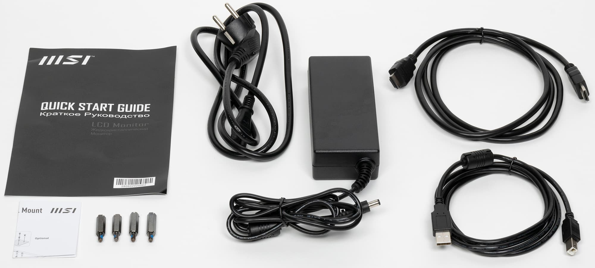Производитель приложил к монитору два интерфейсных кабеля, среди которых кабеля USB-C, к сожалению, нет.