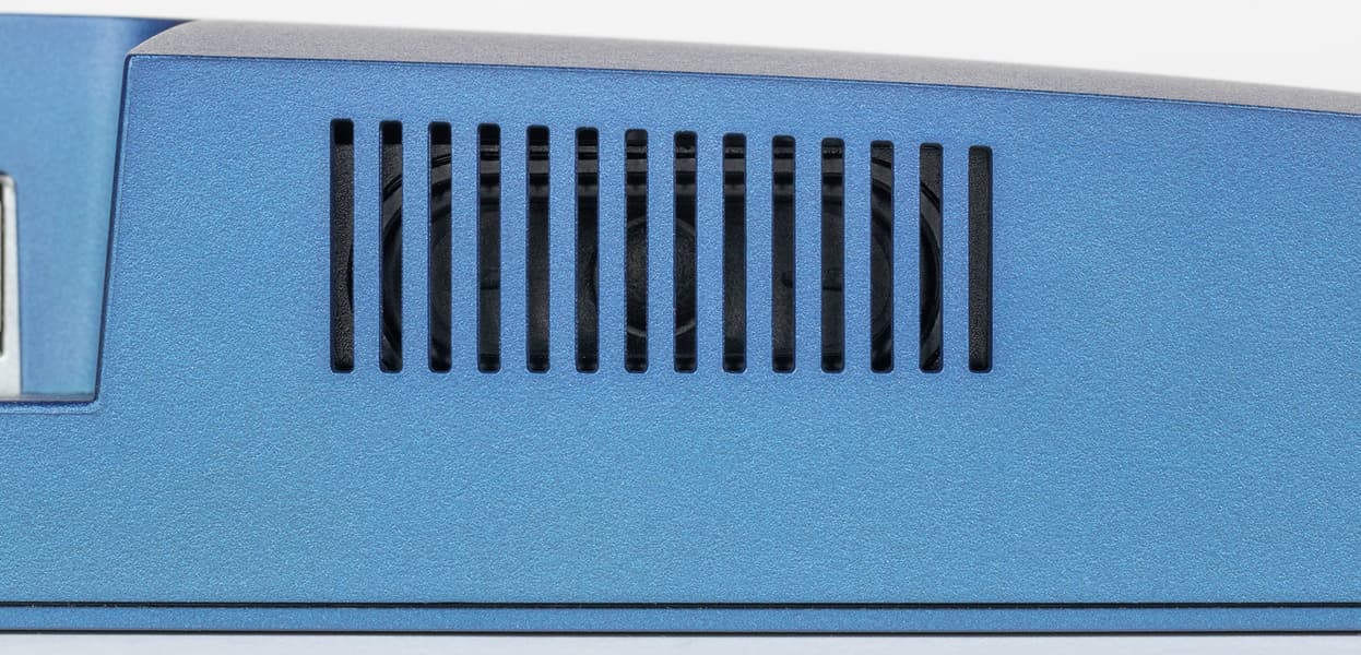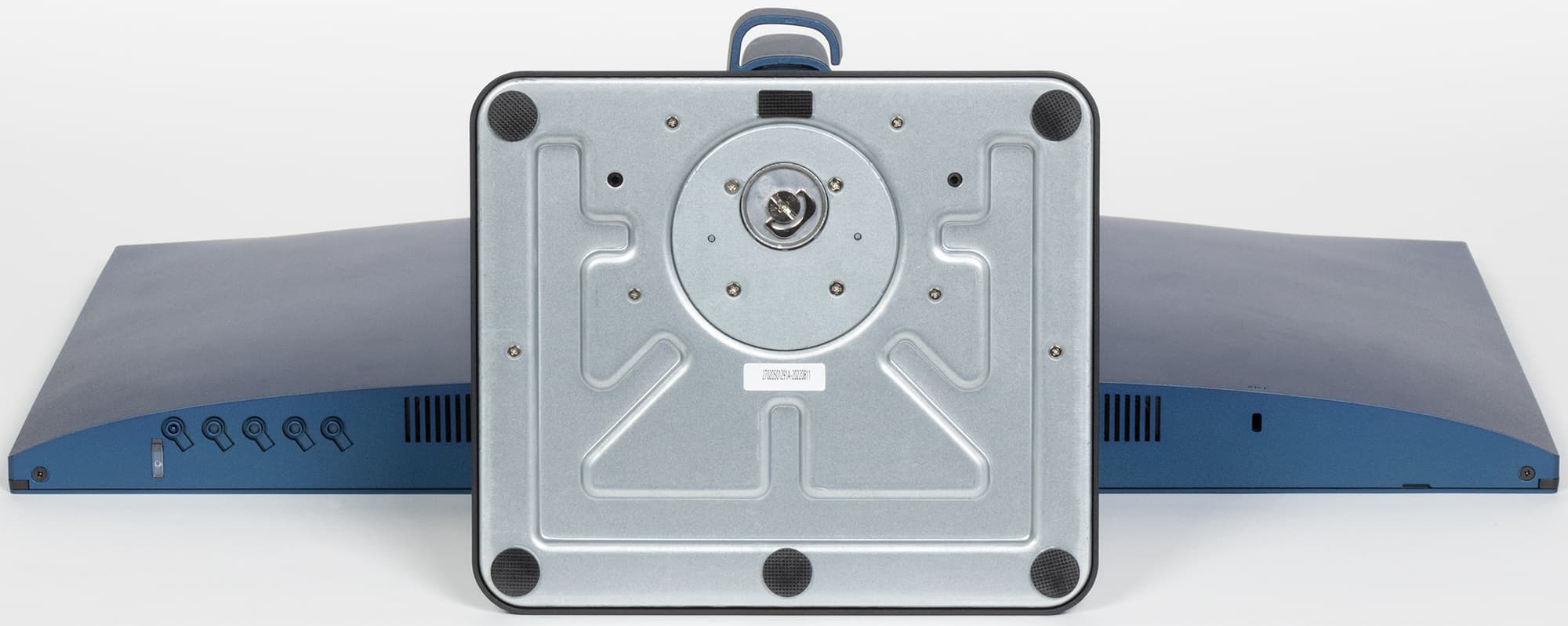 На верхнем и на нижнем торцах есть вентиляционные решетки. За решетками снизу расположены встроенные в монитор громкоговорители с вытянутыми диффузорами. Громкоговорители установлены в корпусах, закрепленных на упругих стойках.