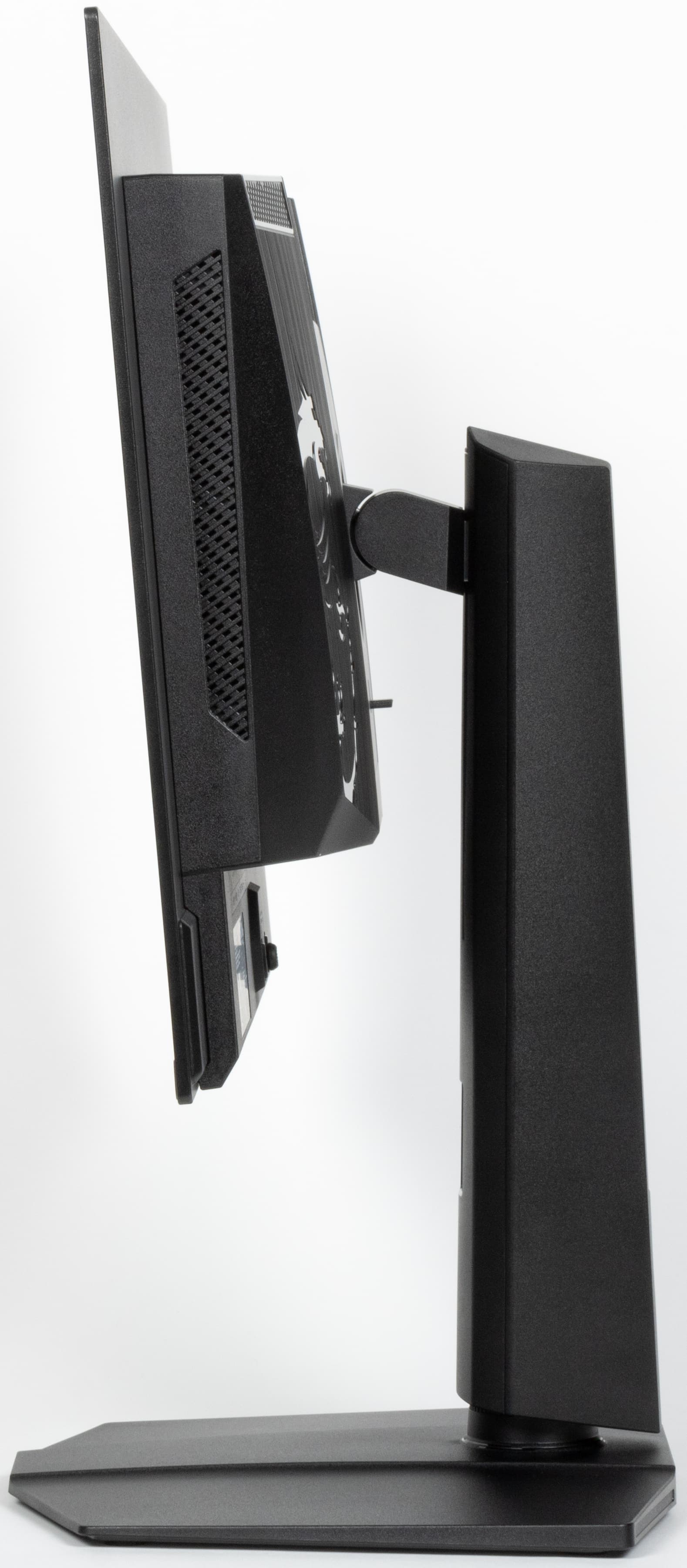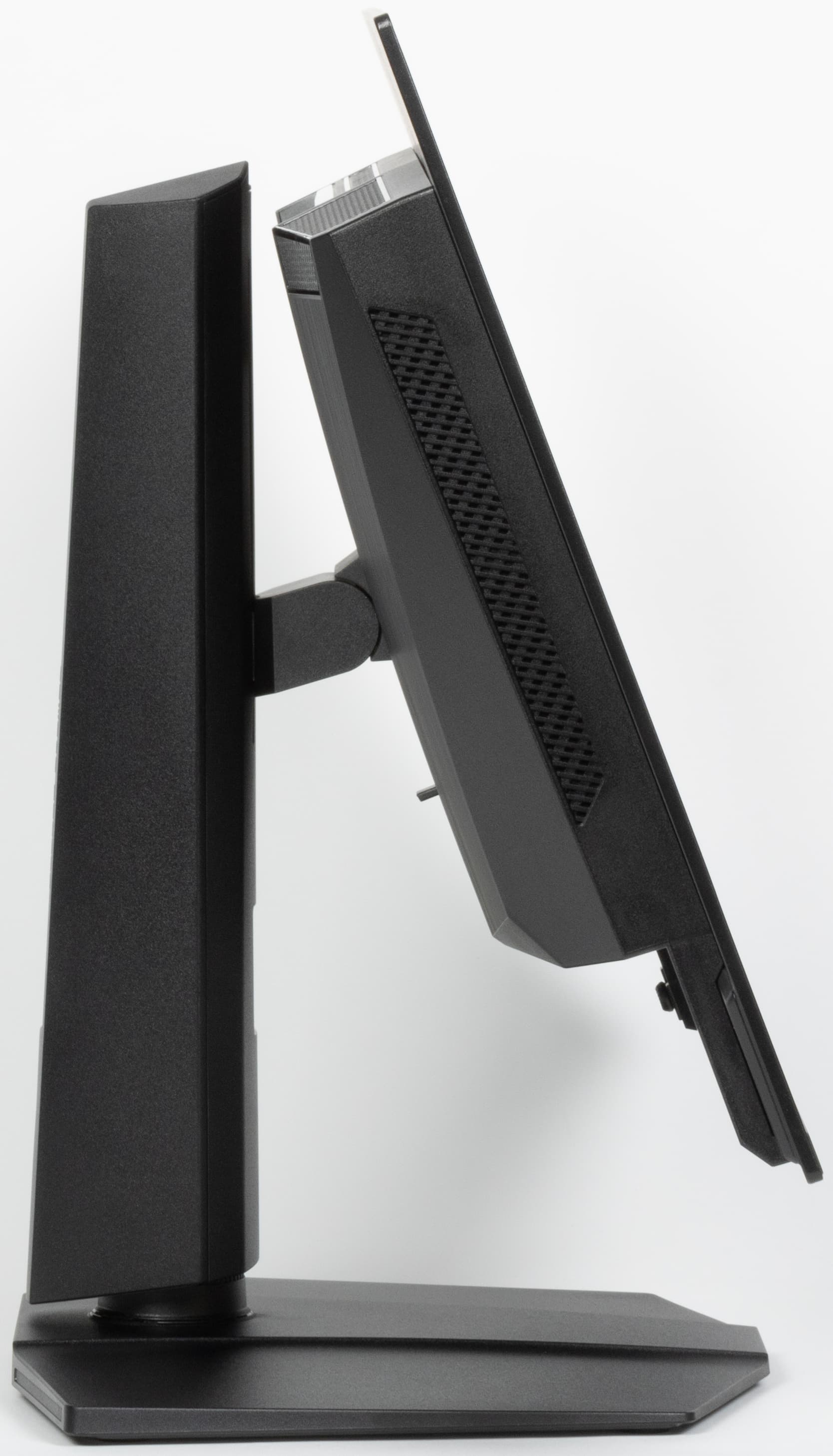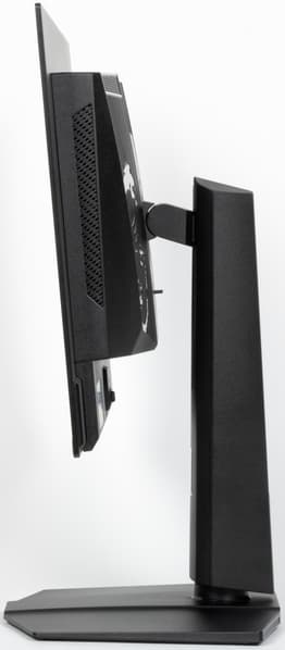 Стойка подставки имеет фиксированную высоту, но подпираемый пружиной механизм со стальным рельсовым шариковым подшипником обеспечивает вертикальное перемещение узла, на который крепится блок экрана. Штатная подставка позволяет немного наклонить блок экрана вперед, отклонить назад, приподнять-опустить, повернуть вправо-влево и перевернуть в портретную ориентацию по и против часовой стрелки.