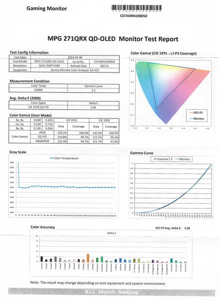 К монитору (к каждому конкретному экземпляру) прилагается отчет о качестве цветового баланса: