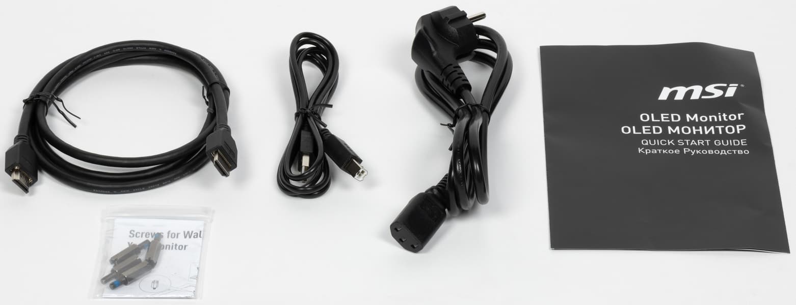 К монитору прилагается комплект кабелей черного цвета. Качество кабеля HDMI с виду хорошее.
