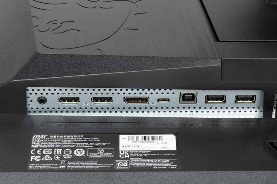 Монитор оснащен тремя цифровыми входами в полноразмерном варианте — DisplayPort и парой HDMI, — дополненные входом USB-C. Выбор входа осуществляется в основном меню установок или в меню быстрого доступа (если оно настроено на одно из отклонений джойстика). Есть отключаемая функция автоматического поиска сигнала на входах.