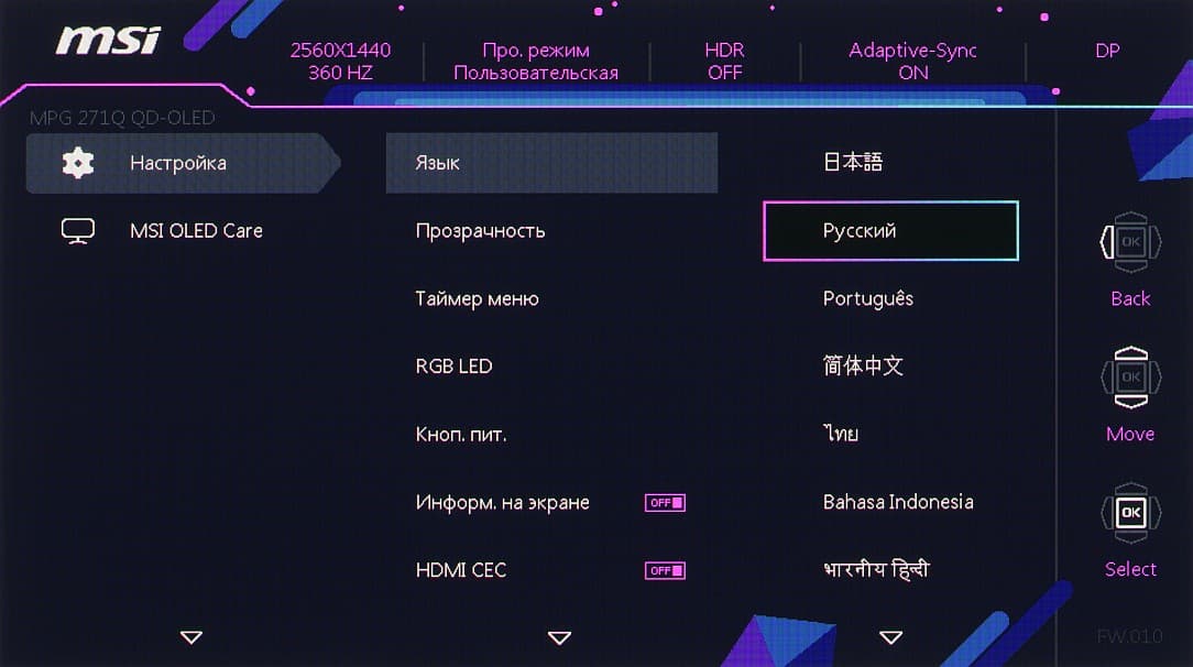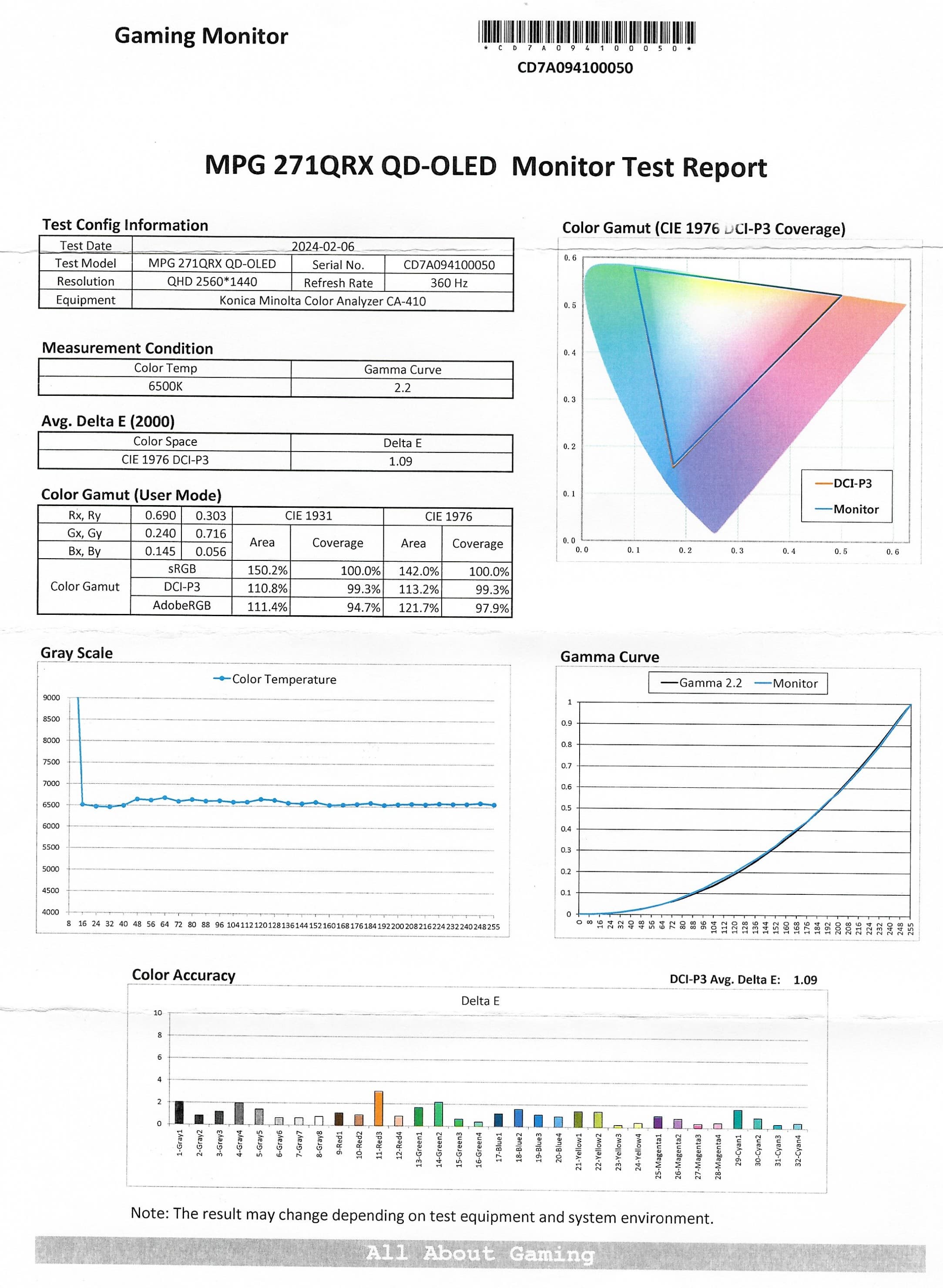 | Название модели, ссылка | MPG 271QRX QD-OLED |