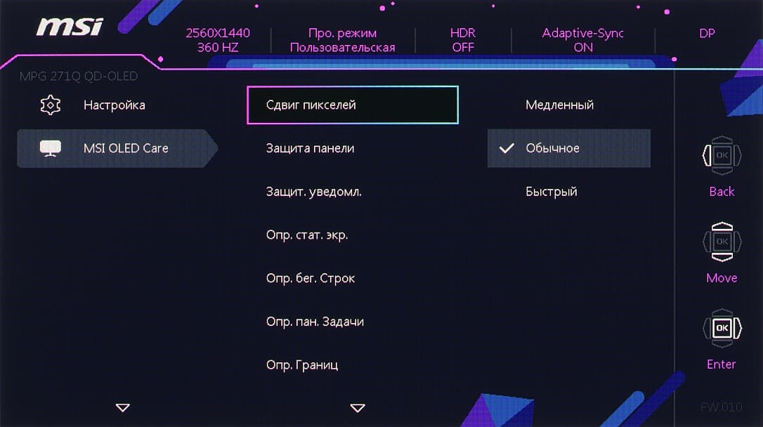 Многие потенциальные покупатели мониторов и телевизоров с матрицами QD-OLED/OLED опасаются эффекта выгорания — неустранимого остаточного изображения. Однако по факту в случае разнообразного контента без статичных участков выгорания OLED не происходит. Этому также способствуют различные функции, предотвращающие эффект выгорания. В данном мониторе их несколько.
