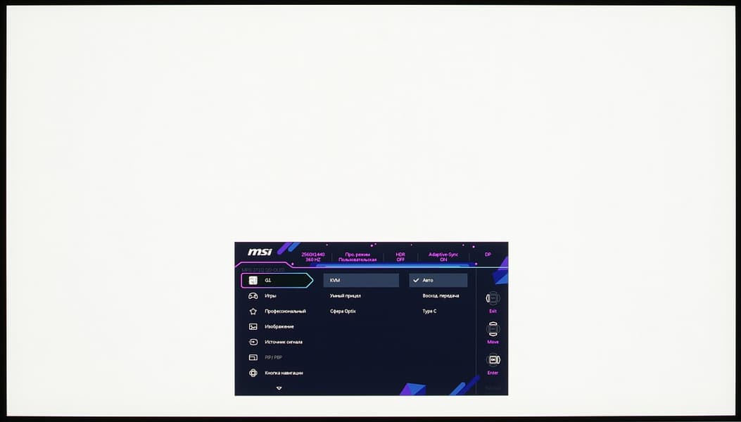 При подключении к компьютеру по DisplayPort, или по HDMI, или по USB-C поддерживается разрешение до 2560×1440 при 360 Гц кадровой частоты без потери цветовой четкости в режиме до 10 бит включительно на цвет на вход. Отметим, что при подключении по DisplayPort и по HDMI (в режиме Console) поддерживается сигнал 1080@120p на вход, что обеспечивает лучшую совместимость с приставками (игровыми консолями).