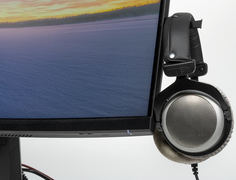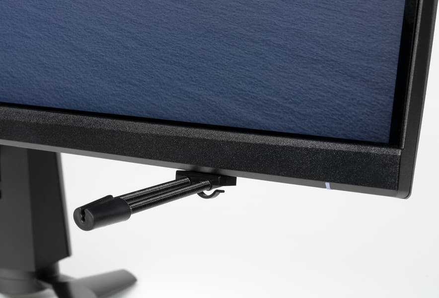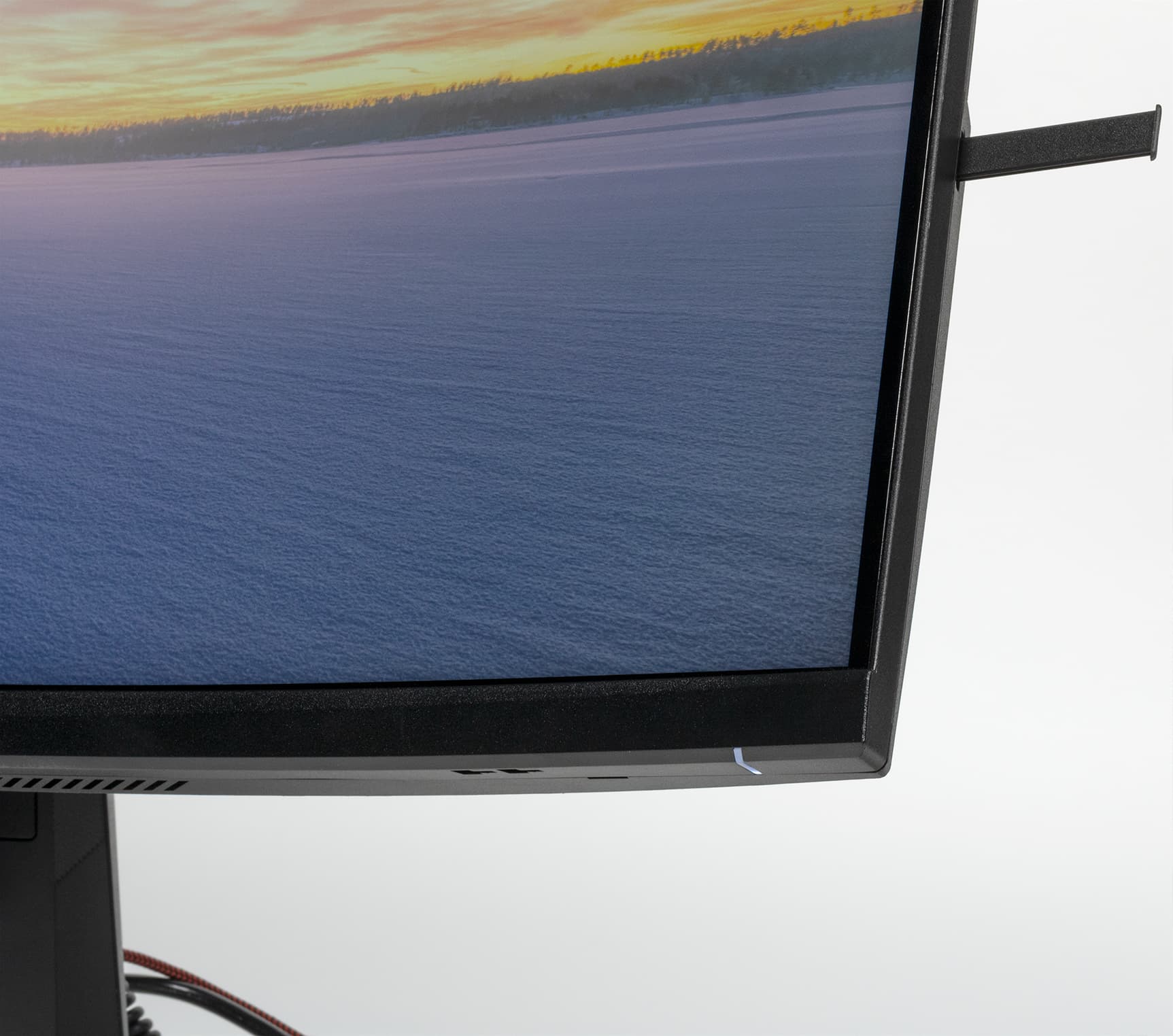 Основание подставки обеспечивает монитору хорошую устойчивость. Резиновые накладки снизу на опорных точках основания подставки защищают поверхность стола от царапин и предотвращают скольжение монитора на гладких поверхностях. Между широко расставленными опорами подставки близко к монитору можно поместить даже полноформатную клавиатуру.