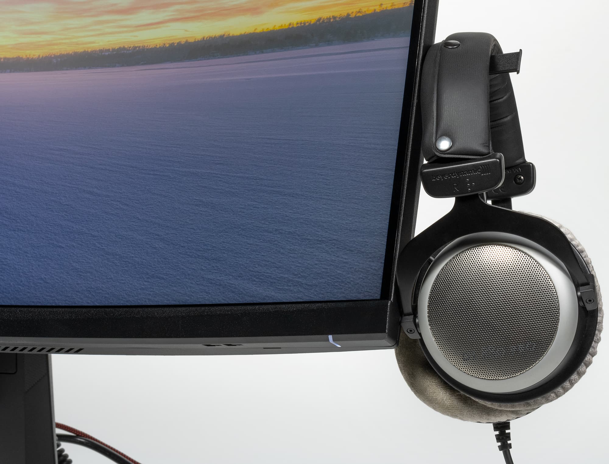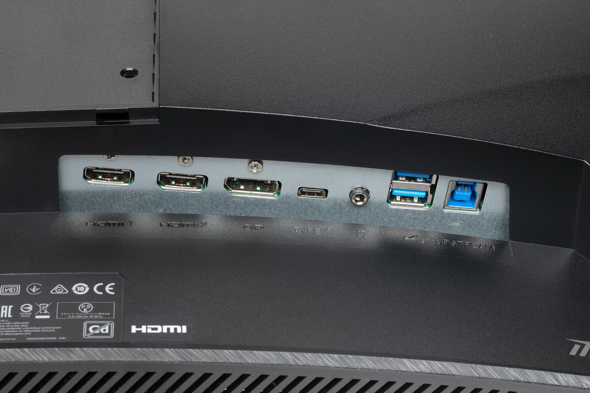 Видеовходов четыре: пара HDMI версии 2.0, DisplayPort версии 1.4 и USB-C. Из них только DisplayPort и USB-C поддерживают на вход сигнал с максимальными для этого монитора разрешением и частотой кадров. Входы выбираются в меню, кроме того, в случае отсутствия сигнала на текущем входе срабатывает автоматический выбор активного входа, который можно отключить. Перечисленные входы способны принимать цифровые аудиосигналы (только PCM стерео), которые выводятся после преобразования в аналоговый вид через гнездо миниджек 3,5 мм. К этому гнезду можно подключить внешнюю активную акустическую систему или наушники. Громкость средствами монитора не регулируется. Мощности выхода на наушники хватило, чтобы в 32-омных наушниках с чувствительностью 92 дБ громкость была достаточной, но совсем без запаса. Качество звука в наушниках хорошее — звук раздражения не вызывает, воспроизводится широкий диапазон частот, в паузах шума не слышно. Есть встроенный концентратор USB (3.0) на два порта.