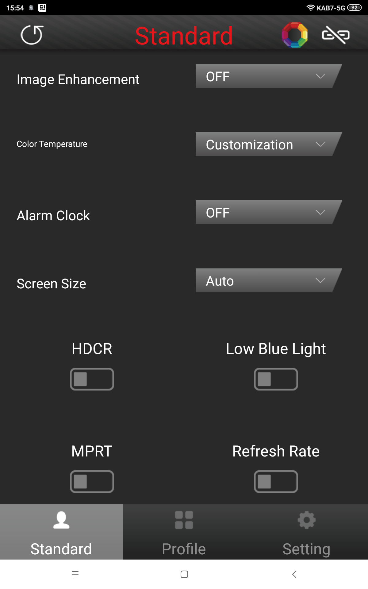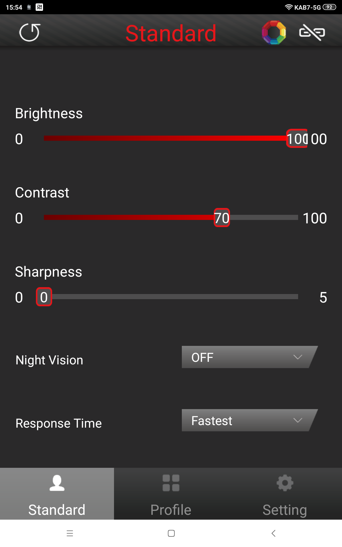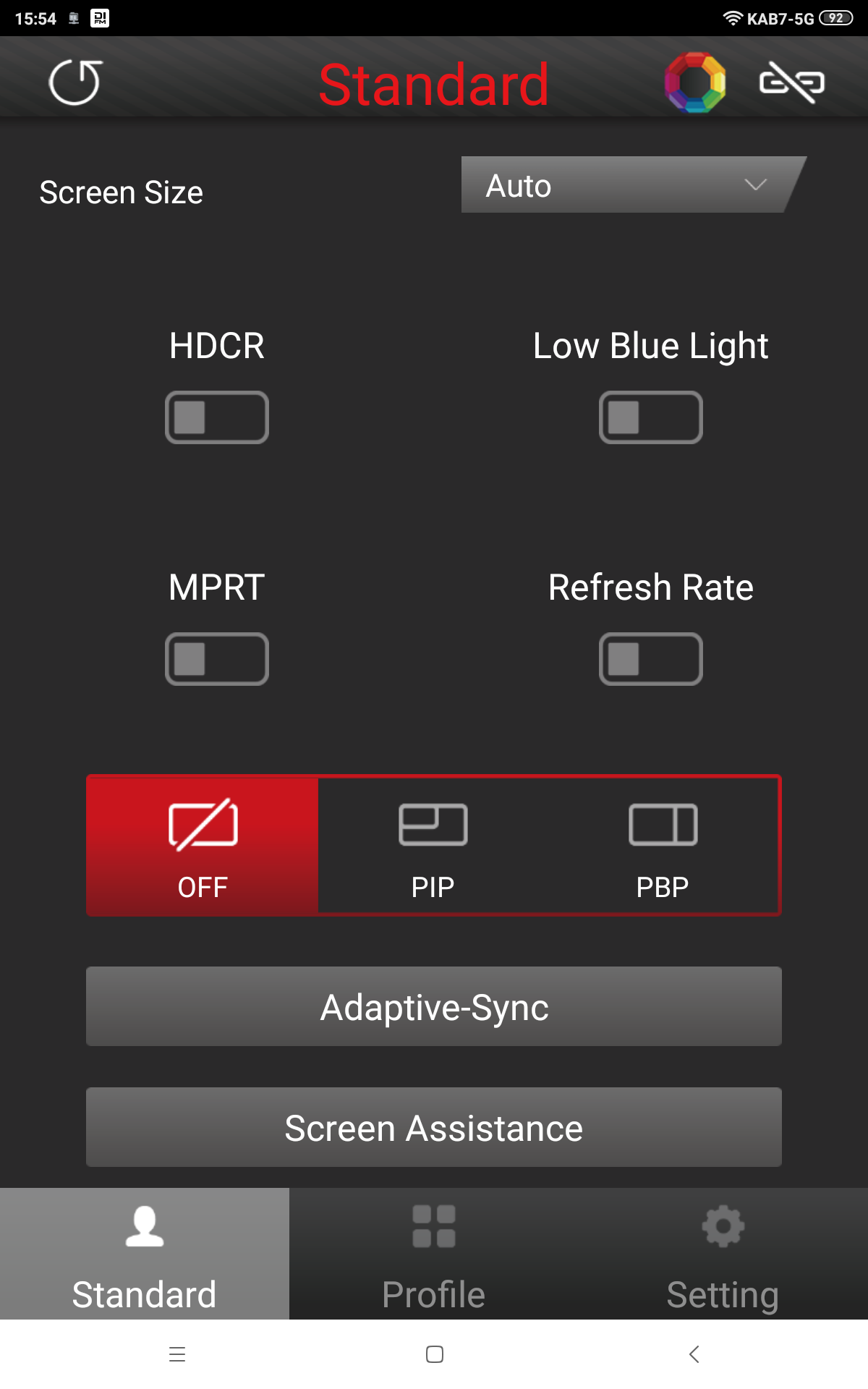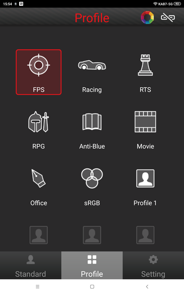 Есть и альтернативный способ управления монитором — с помощью фирменного приложения MSI Remote Display для Android (файл APK можно загрузить с сайта производителя), при этом мобильное устройство и монитор должны находится в одной сети, а на ПК должна быть запущена программа OSD Sidekick. Снимки экрана мобильного устройства с работающей программой MSI Remote Display: