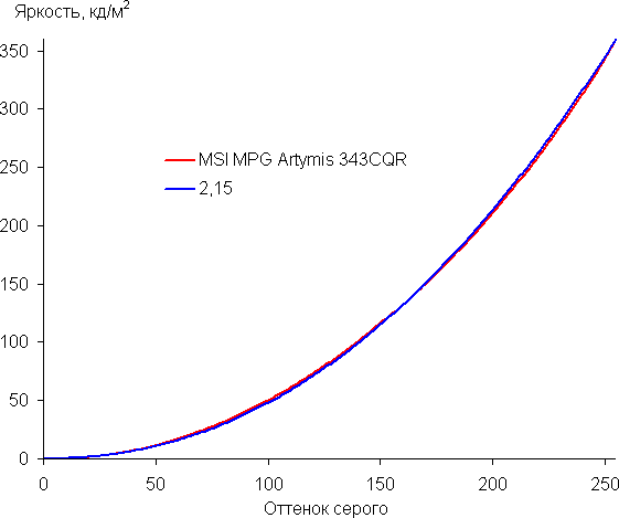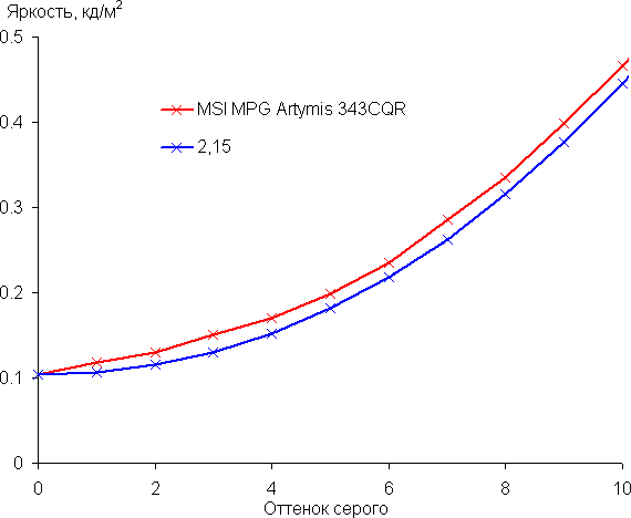 Рост прироста яркости весьма равномерный, и каждый следующий оттенок ярче предыдущего. В тенях все оттенки визуально отличаются по яркости, что для игрового монитора очень полезно: