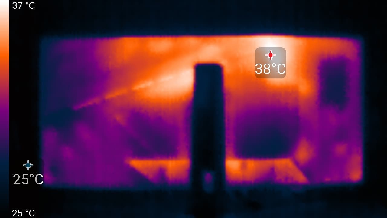 Нагрев монитора можно оценить по снимкам с ИК-камеры, полученным после долговременной работы монитора на максимальной яркости в помещении с температурой примерно 24 °C.