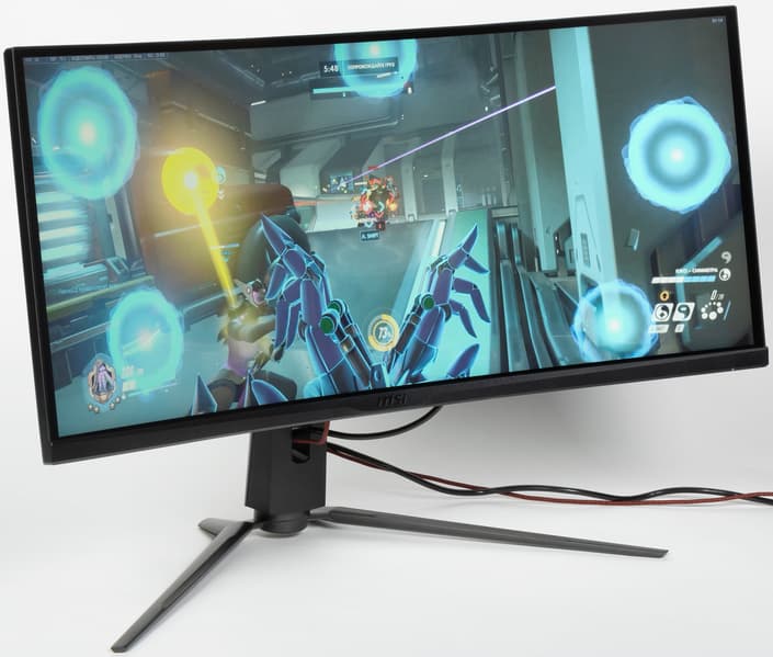 MSI MPG Artymis 343CQR — это игровой монитор высокого класса, подходящий для очень динамичных игр в высоком разрешении, в том числе в сверхширокоформатном варианте. К его особенностям относятся изогнутый с радиусом всего 1 м экран, универсальный дизайн и многоцветная подсветка на задней панели. Есть поддержка частоты обновления до 165 Гц включительно, а также хорошая поддержка HDR. Игроки наверняка оценят наличие игровых функций — таймера, экранного прицела, вывода частоты кадров, вставки черного кадра и улучшения различимости градаций в тенях, а также увеличение области экрана. Несмотря на явную ориентацию на геймеров, монитор получился универсальным, пригодным, например, для комфортного выполнения офисной работы и для просмотра кино. Неширокие углы обзора как по снижению яркости, так и по изменению цветов частично компенсируются тем, что экран изогнутый.