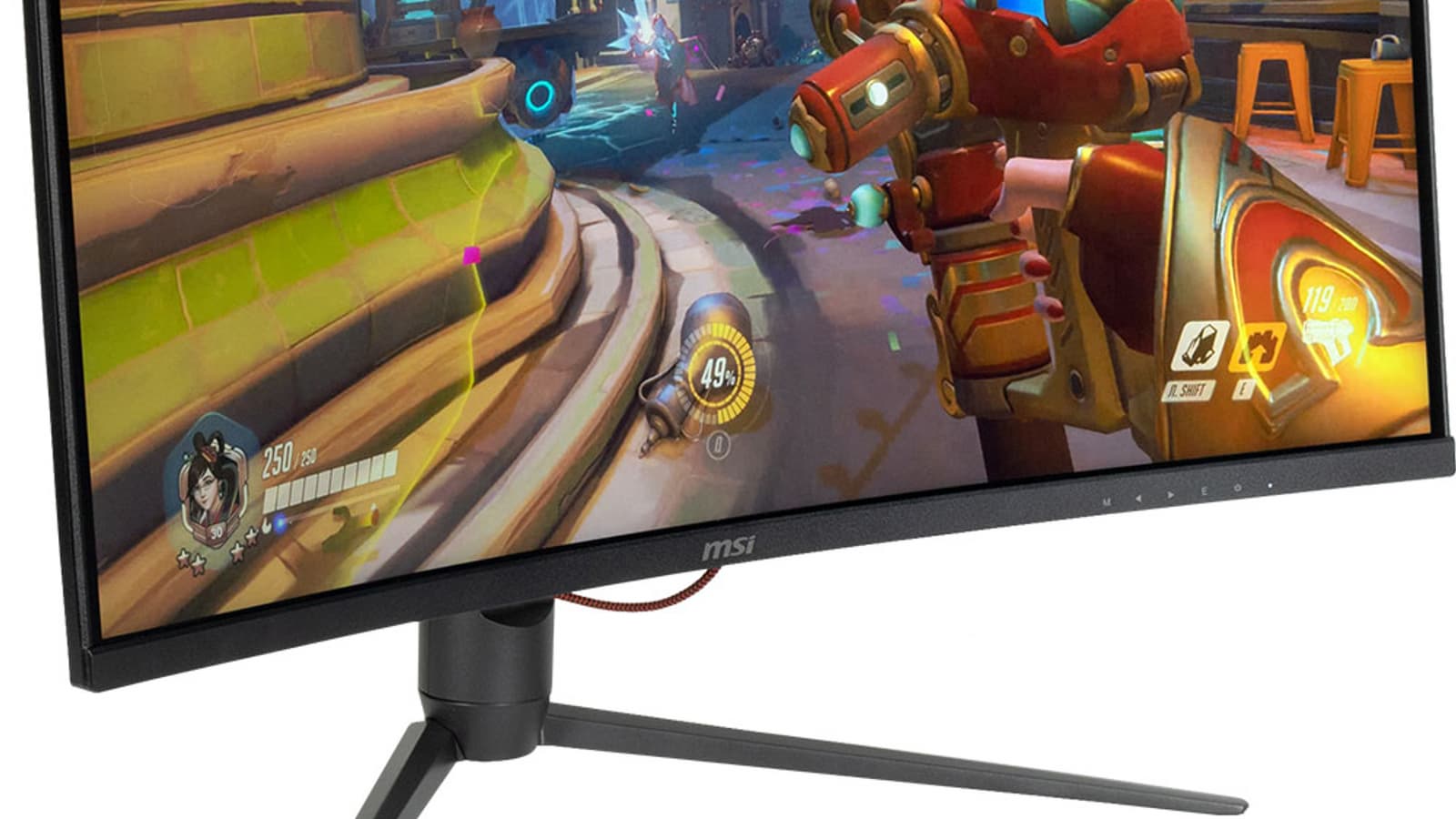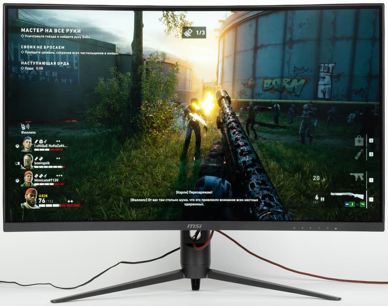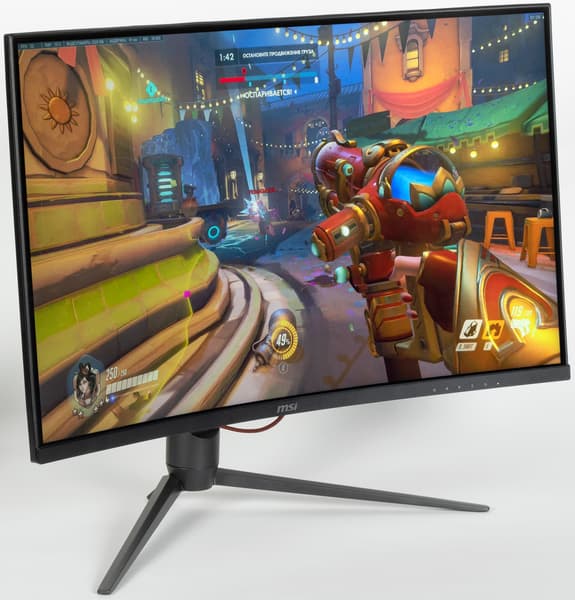 MSI Optix G321CQP — это игровой монитор высокого класса, подходящий для очень динамичных игр в высоком разрешении. К его особенностям относятся изогнутый с радиусом всего 1 м экран и сдержанный игровой дизайн. Есть поддержка частоты обновления до 165 Гц включительно. Правда, используемая ЖК-матрица не очень быстрая, но польза от высокой частоты всё равно есть: задержка вывода меньше, динамичная картинка четче. Игроки наверняка оценят наличие игровых функций — таймера, экранного прицела, вывода частоты кадров, вставки черного кадра и улучшения различимости градаций в тенях. Несмотря на явную ориентацию на геймеров, монитор получился универсальным, пригодным, например, для комфортного выполнения офисной работы и для просмотра кино (но лучше с ПК и в индивидуальном порядке). Неширокие углы обзора как по снижению яркости, так и по изменению цветов частично компенсируются тем, что экран изогнутый.