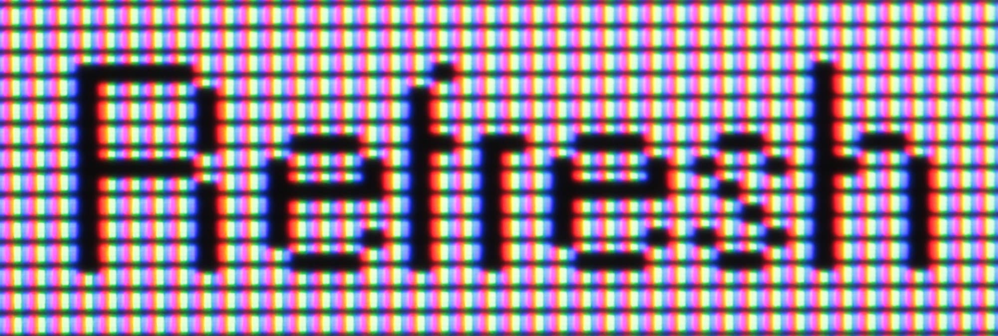 Отметим, что из-за особенностей формирования изображения (по горизонтали пиксель разделен темным промежутком) в случае данного монитора мелкий текст выглядит менее четким. Пример (нужно рассматривать издалека):