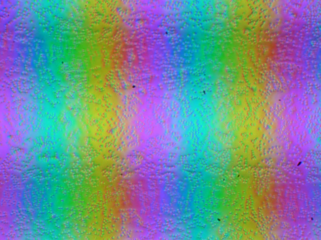 Зерно этих дефектов в несколько раз меньше размеров субпикселей, поэтому фокусировка на микродефектах и «перескок» фокуса по субпикселям при изменении угла зрения выражены слабо, из-за этого нет и «кристаллического» эффекта.