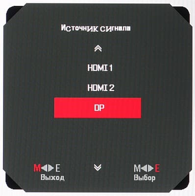 Видеовходов три: пара HDMI и DisplayPort. Из них только DisplayPort поддерживает на вход сигнал с максимальными для этого монитора разрешением и частотой кадров. Входы выбираются в меню, кроме того, в случае отсутствия сигнала на текущем входе срабатывает автоматический выбор активного входа, который можно отключить. Перечисленные входы способны принимать цифровые аудиосигналы (только PCM стерео), которые выводятся после преобразования в аналоговый вид через гнездо миниджек 3,5 мм. К этому гнезду можно подключить внешнюю активную акустическую систему или наушники. Громкость средствами монитора не регулируется. Мощности выхода на наушники хватило, чтобы в 32-омных наушниках с чувствительностью 92 дБ громкость была достаточной, но совсем без запаса. Качество звука в наушниках хорошее — звук раздражения не вызывает, в паузах шума не слышно, но низких частот практически нет.