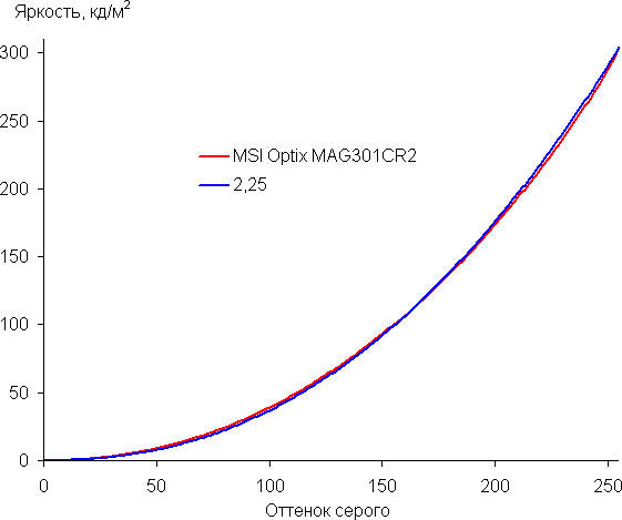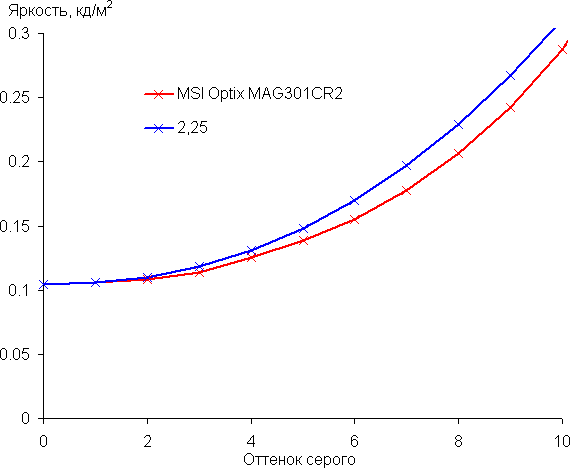 Рост прироста яркости более-менее равномерный, и каждый следующий оттенок ярче предыдущего. В тенях все оттенки визуально отличаются по яркости, что для игрового монитора очень полезно: