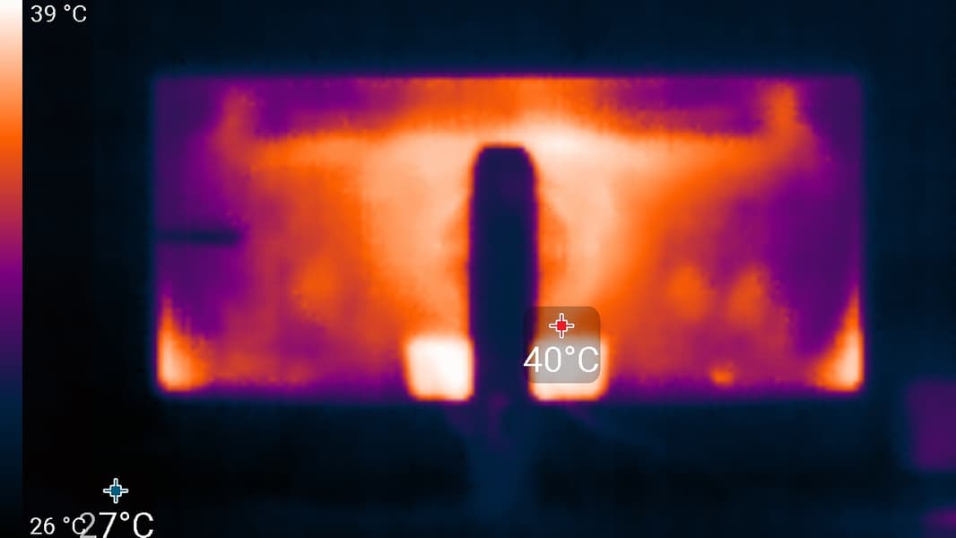 Нагрев монитора можно оценить по снимкам с ИК-камеры, полученным после долговременной работы монитора на максимальной яркости в помещении с температурой примерно 24 °C.