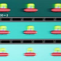 Попробуем представить, что было бы в случае матрицы с мгновенным переключением пикселей. Для нее при 60 Гц объект со скоростью движения 960 пиксель/с размывается на 16 пикселей, при 120 Гц — на 8 пикселей (скорость 960 пиксель/с), при 144 Гц — на 7 пикселей (скорость 1008 пиксель/с), при 200 Гц — на 5 пикселей (скорость 1000 пиксель/с). Размывается, так как фокус зрения движется с указанной скоростью, а объект неподвижно выводится на 1/60, 1/120, 1/144 или 1/200 секунды. Для иллюстрации этого сымитируем размытие на перечисленное количество пикселей: