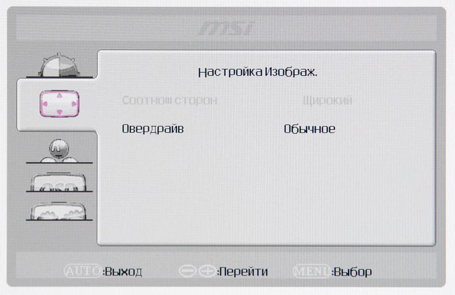 Время отклика зависит от значения настройки Овердрайв, которая управляет разгоном матрицы.