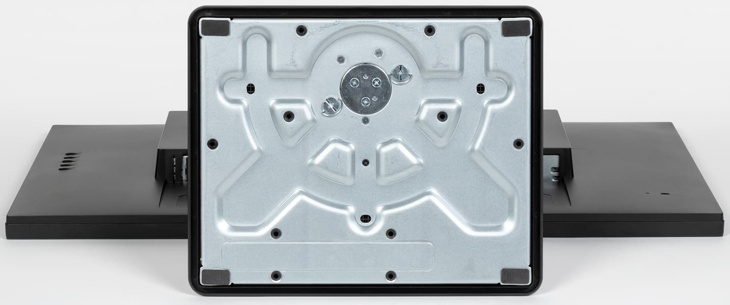 Подставку можно отсоединить (или не подсоединять изначально) и закрепить блок экрана на VESA-совместимом кронштейне с отверстиями по углам квадрата со стороной 100 мм.