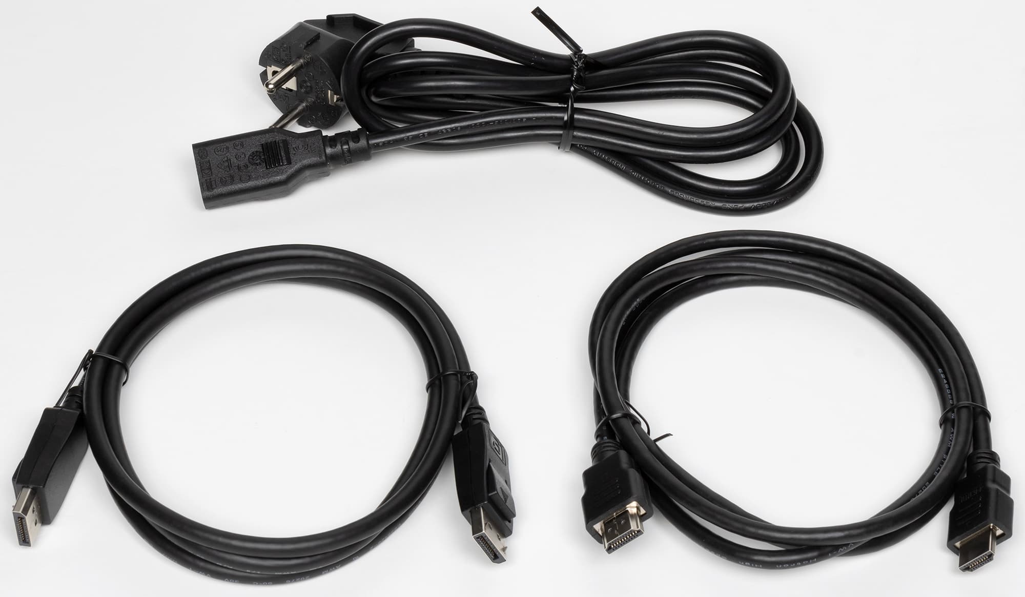 Производитель приложил к монитору три кабеля.