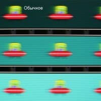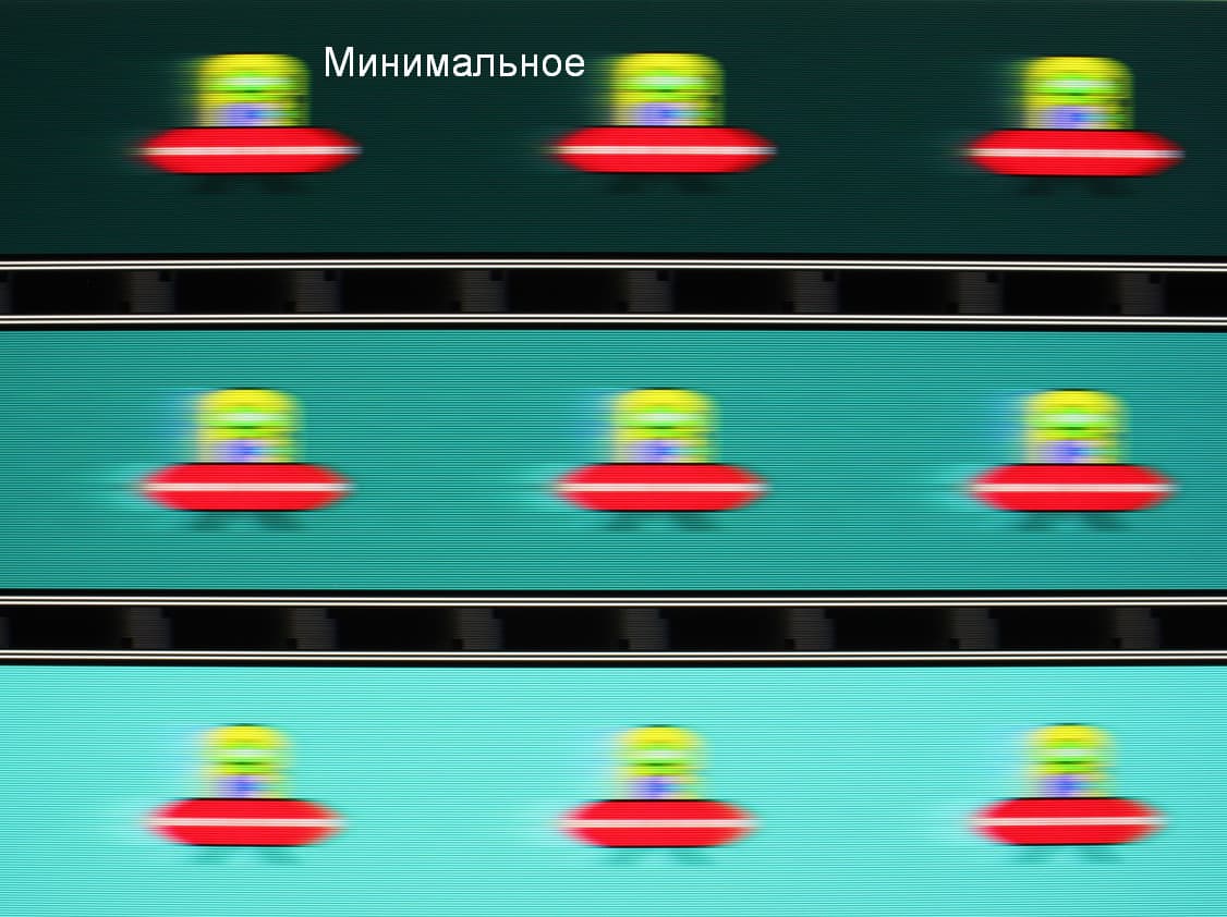 Видно, что при прочих равных условиях четкость изображения повышается по мере роста степени разгона, но на максимальном разгоне артефакты (шлейф позади тарелки) уже очень заметные.