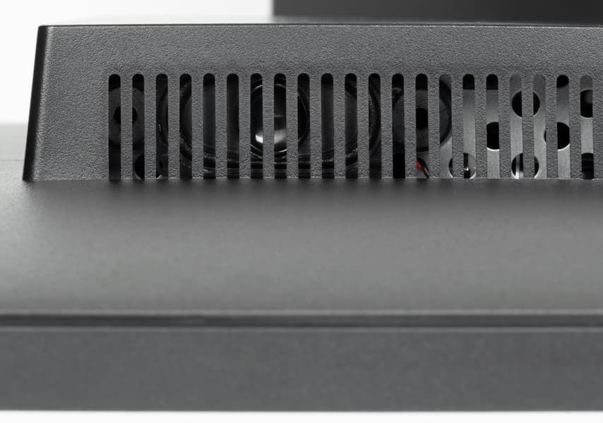 На верхнем и на нижнем торцах выступа сзади есть вентиляционные решетки. За решеткой сверху расположены встроенные в монитор громкоговорители с вытянутыми диффузорами. Громкоговорители установлены в корпусах, закрепленных на упругих стойках.