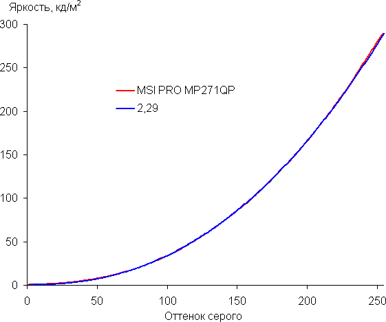 Аппроксимация полученной гамма-кривой дала показатель 2,29, что немного выше стандартного значения 2,2. При этом реальная гамма-кривая мало отклоняется от аппроксимирующей степенной функции:
