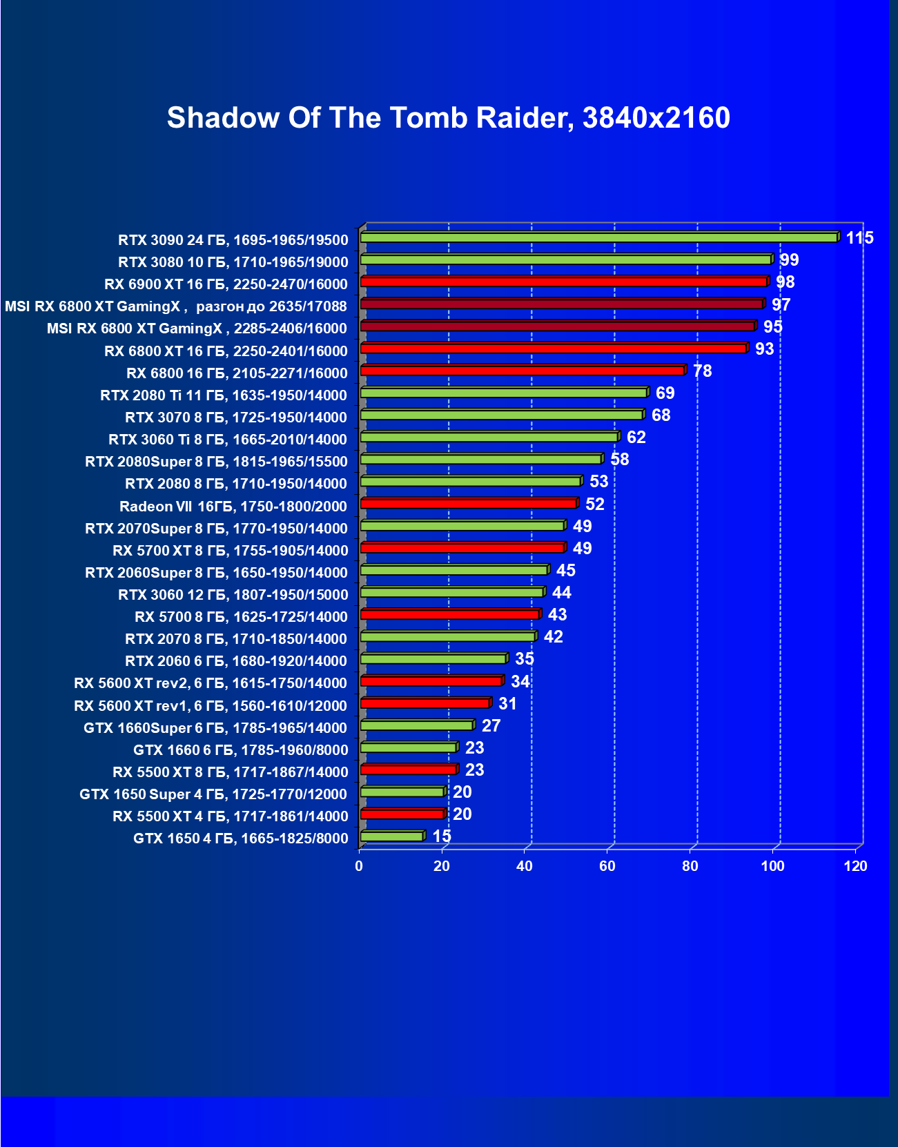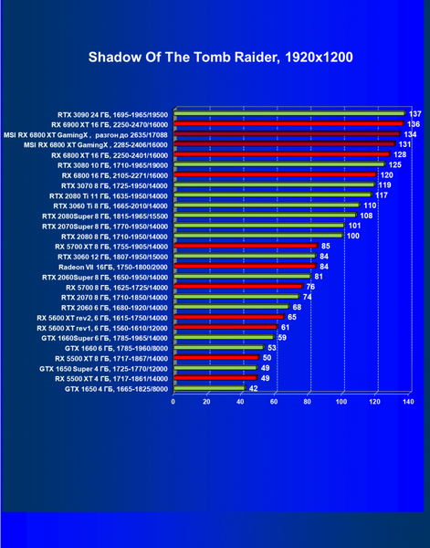 | 02 | MSI RX 6800 XT GamingX, разгон до 2635/17088 | 133 | 1625 | 122 000 |