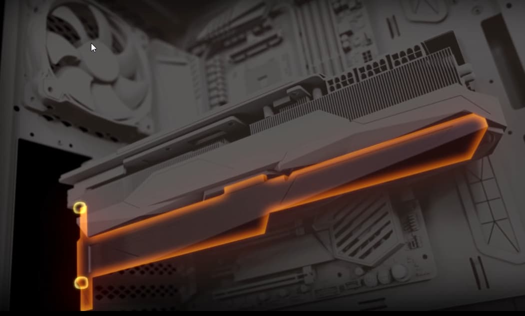 У карты подсвечиваются логотип компании и длинная полоса на верхнем торце, а таже шесть диагональных полос между вентиляторами. Подсветка больше предназначена тем, кто предпочитает стандартно горизонтально устанавливать карту в вертикально расположенную материнскую плату.