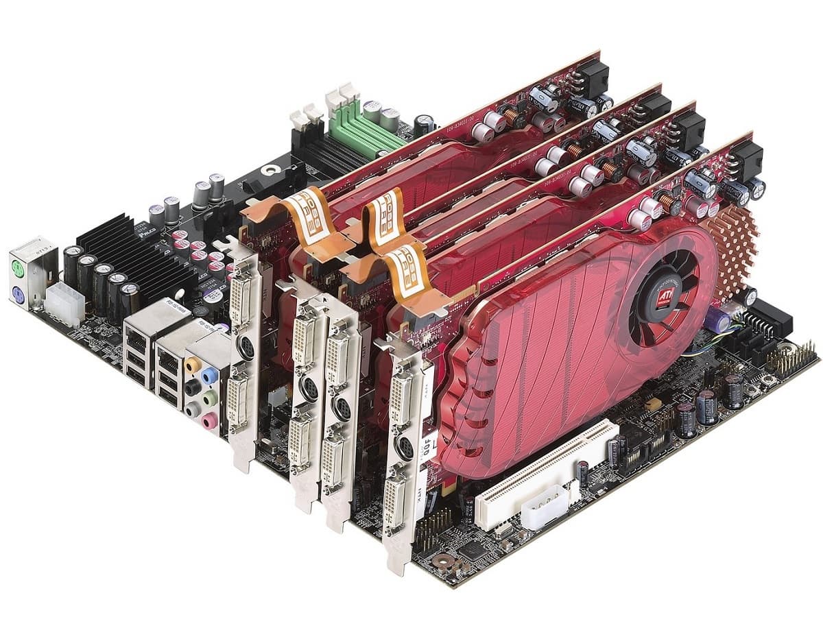 Впрочем, принципиально это ничего не изменило. Как уже было сказано выше, в условиях быстрой смены стандартов и вообще бурного прогресса поэтапный апгрейд видеосистемы не имел смысла. Единственное применение технологии виделось в том, чтобы собрать сразу нечто рекордно мощное. Но для этого нужно было взять пару-тройку самых мощных видеокарт. А вот с этим в те годы лучше обстояли дела у Nvidia, так что на деле SLI-сборки встречались чаще. За поддержку SLI нужно было платить, но готовые платить находились. Чтобы переломить ситуацию, нужно было выпускать топовые в полном смысле слова GPU, но с этим у ATi были сложности. И покупка ATi компанией AMD в 2006 году положение дел не слишком изменила. Даже наоборот: на время был задекларирован отказ от монолитных GPU высокой мощности. Логичное обоснование заключалось в том, что процесс разработки сложный, производство — тоже непростое, да и брака при выпуске чипов большой площади оказывается много. Поэтому топовые GPU стоят дорого, а нужны в очень ограниченных количествах. Значит, имеет смысл сконцентрироваться на GPU для массового сегмента, а топовые ускорители в обязательном порядке должны быть двухчиповыми — для чего у компании есть все необходимые технологии.