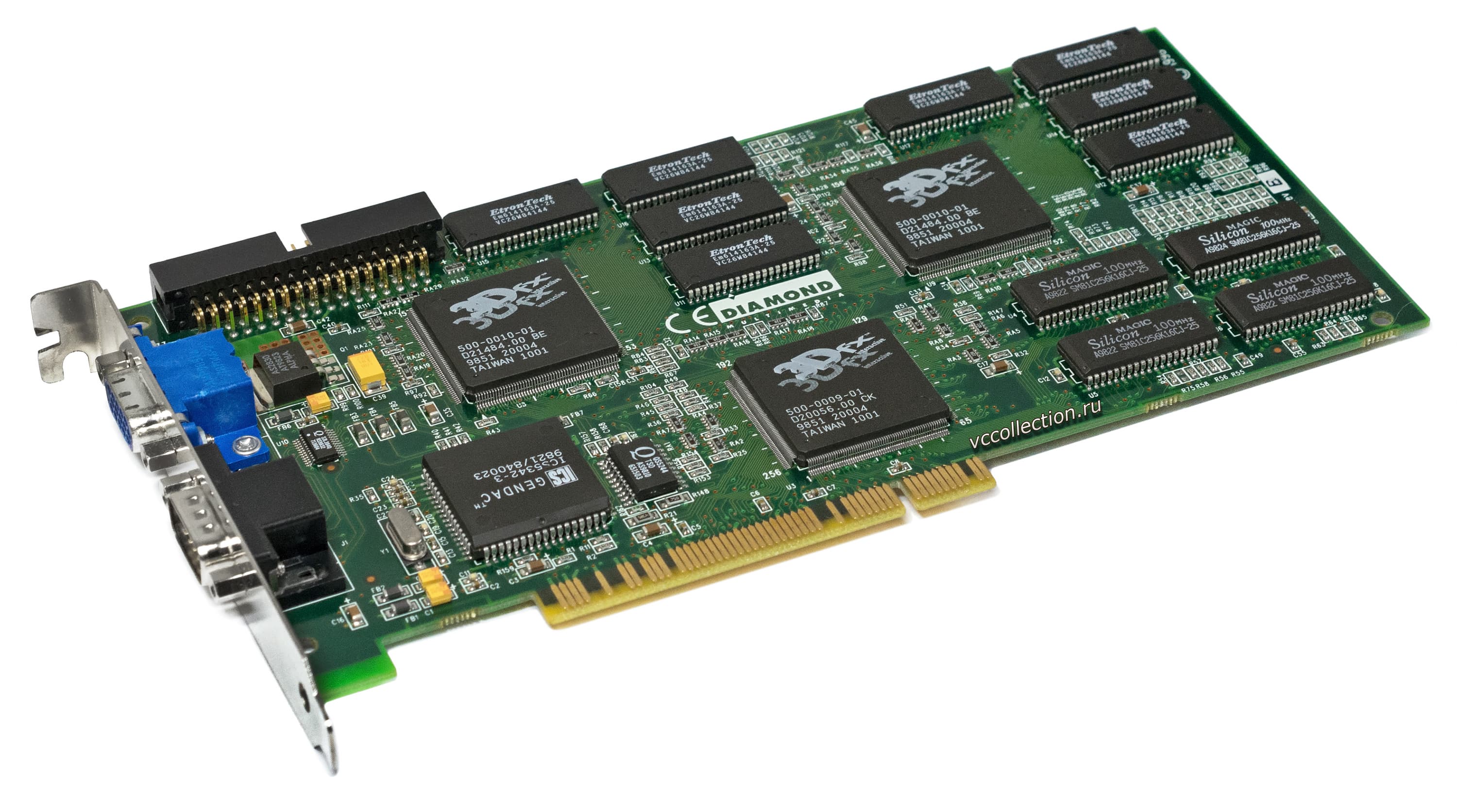 Что случилось потом? Понятно что. Рынком занялись все: и старые игроки, и новые. Схема с отдельным 3D-ускорителем имела очевидные недостатки, так что и сама 3dfx от нее отказалась. А вот победить в конкуренции «комбинированных» решений уже не смогла. Время было такое — в целом из всех имен, гремевших на рынке в 90-е, не осталось никого. Разве что Nvidia — когда-то такой же мелкий стартап, как и 3dfx, но еще и с провальным (в отличие от Voodoo) первым продуктом. Но Nvidia сумела выжить и больше серьезных ошибок не делала. А остальные — не сумели. У 3dfx были очень удачные Voodoo Banshee и Voodoo3 — но не настолько удачные, чтобы удержать завоеванные после выхода Voodoo три четверти рынка. В качестве оружия победы компания выбрала архитектуру VSA, т. е. Voodoo Scalable Architecture. Слово «масштабируемая» в названии использовалось неспроста: подразумевалась совместная работа в одной системе до 32 чипов одновременно. Как? Так ведь у компании уже была SLI! Правда технологию пришлось доработать: кроме расширения чересстрочного режима на случай более 2 GPU, была добавлена и работа над полосами из соседних строк. Причем ширина полос могла меняться динамически в зависимости от сложности картинки — для более полной загрузки процессоров, расположенных на одной плате. От объединения пары отдельных плат пришлось отказаться: пропускная способность шины PCI стала уже недостаточной для видеокарт, а выделенный порт AGP в системе мог быть только один. С одной стороны, это упростило разработку. С другой — в немалой степени оказалось причиной смерти новых решений, поскольку за такую плату нужно было платить сразу много денег. Но другого выбора у 3dfx не было: на разработку одночипового убер-решения уже не хватало ни времени, ни денег. А вот на выпуск простой GPU VSA-100 они были.