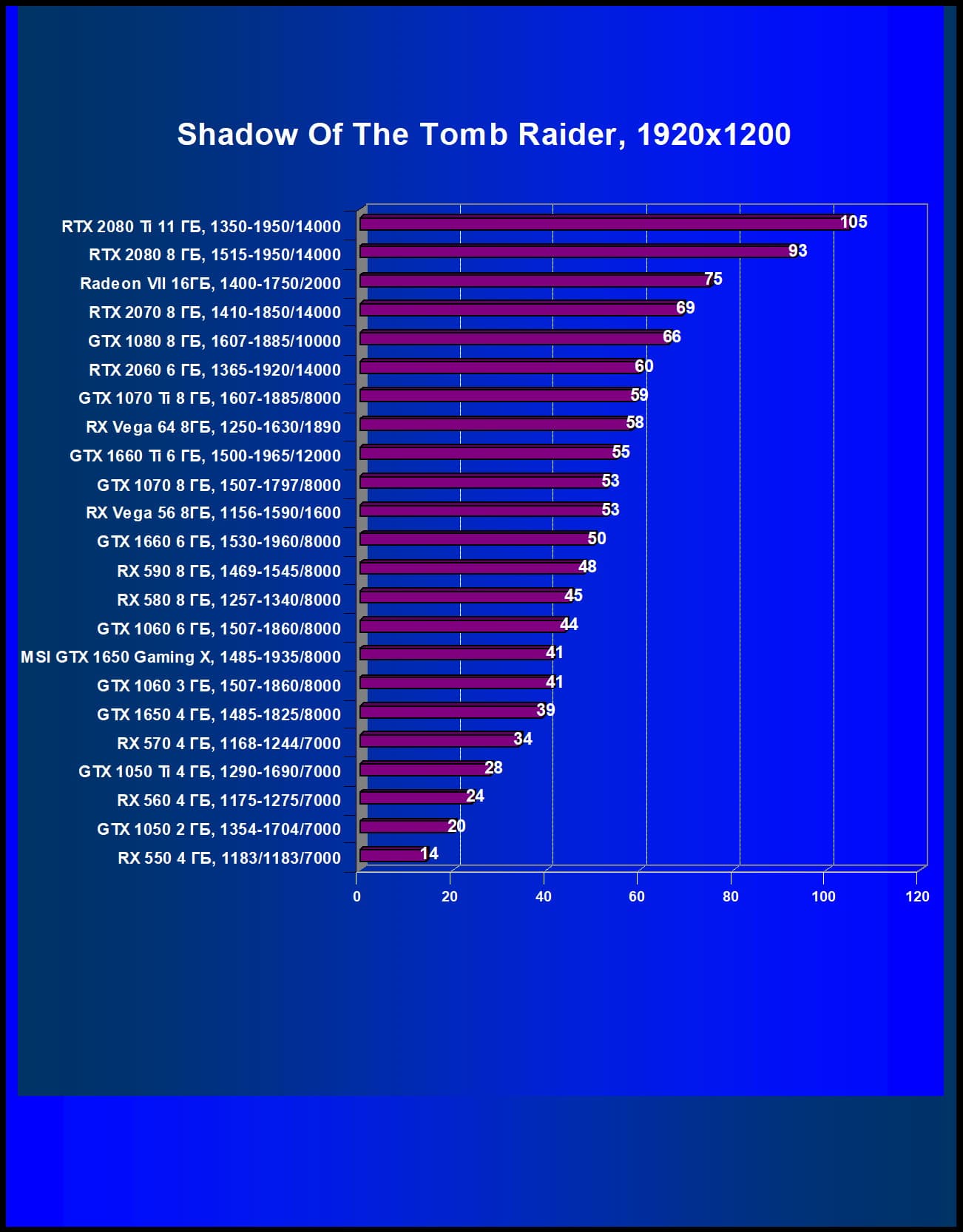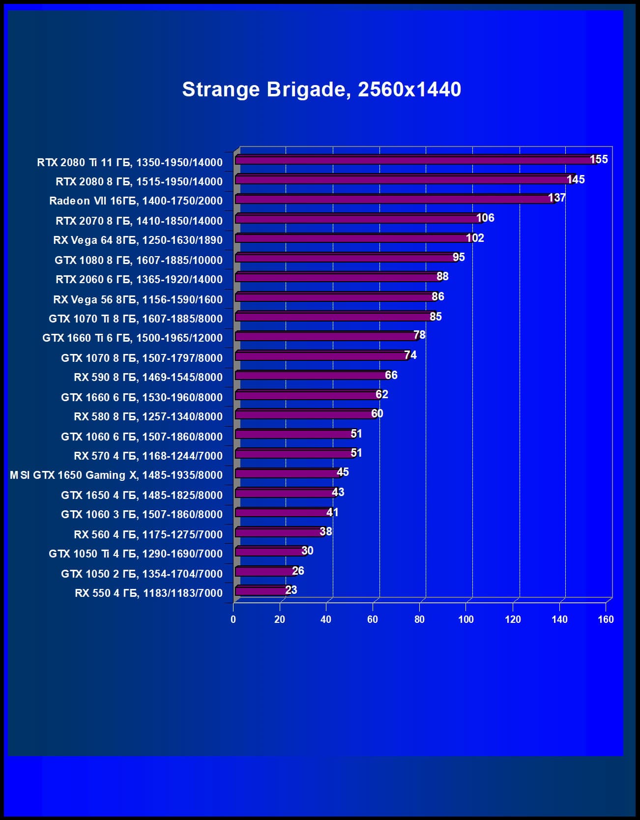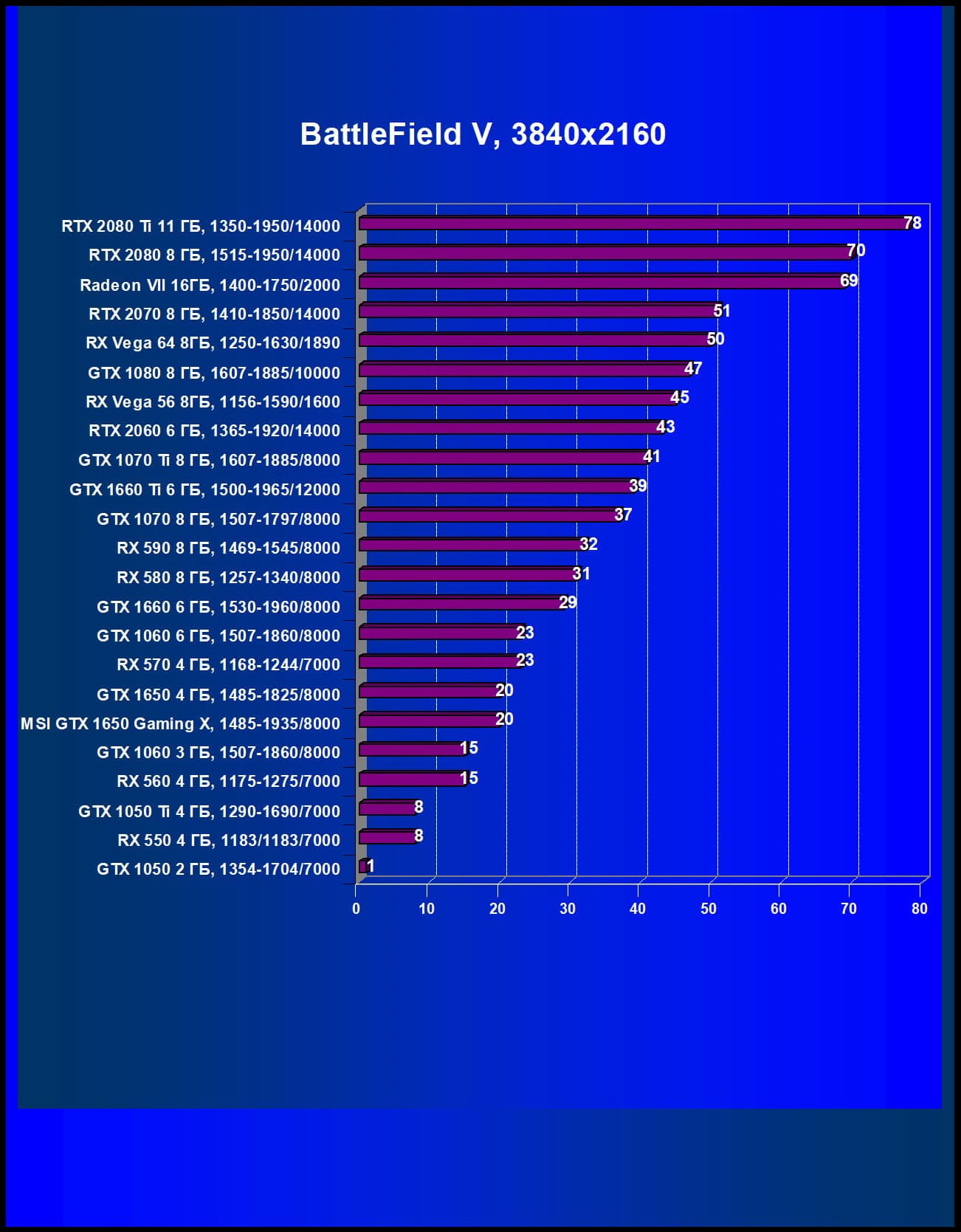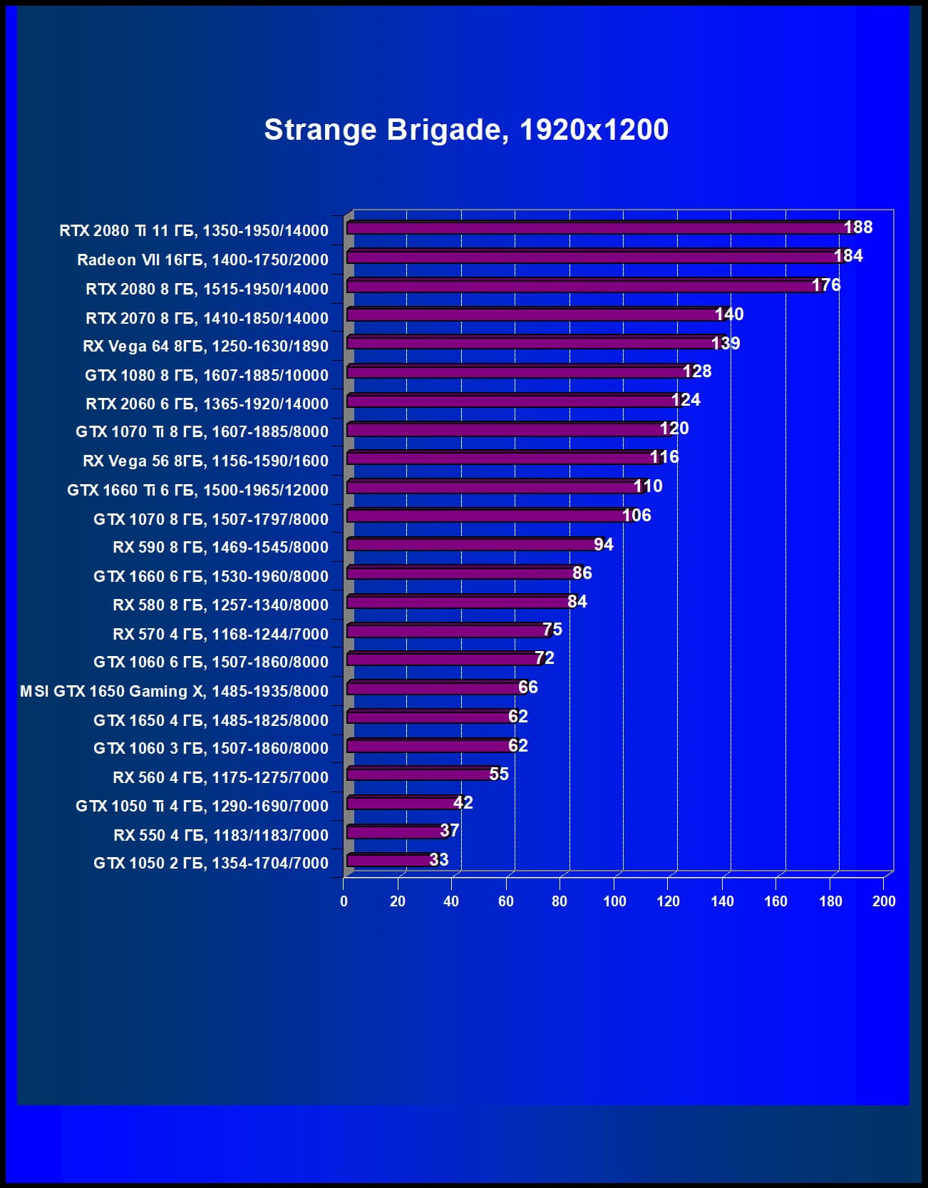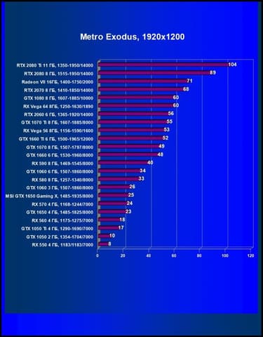 | 08 | MSI GTX 1650 Gaming X, 1485—1935/8000 | 246 | 310 | 12 600 |