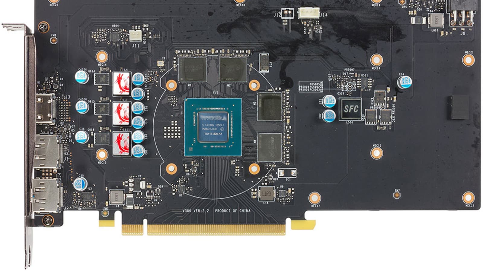 Рассматриваемая сегодня новинка основана на графическом процессоре TU117, также не имеющем RT-ядер и тензорных ядер. Зато этот GPU имеет максимально возможную энергоэффективность в рамках определенного транзисторного бюджета, что важно для современных игр без применения трассировки лучей. Благодаря архитектурным улучшениям, по производительности и энергоэффективности видеокарты семейства Turing превосходят аналогичные GPU из предыдущих семейств компании Nvidia.