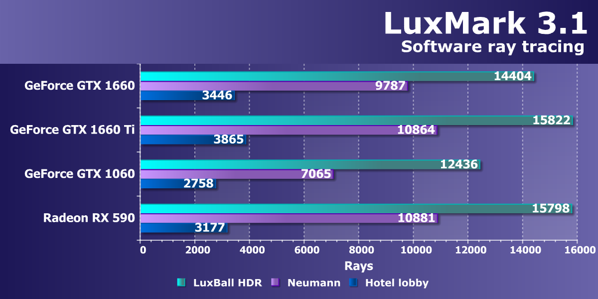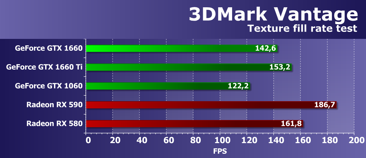 Если сравнивать по пиковым показателям, то GTX 1660 получился совсем чуть-чуть быстрее GTX 1660 Ti (и даже RTX 2060) по филлрейту (из-за одинакового количества блоков ROP и большей частоты GPU), но по куда более важным показателям математической и текстурной производительности новинка обеспечивает примерно на 10% меньшую производительность по сравнению со старшей моделью GTX 1660 Ti, основанной на полноценном TU116.