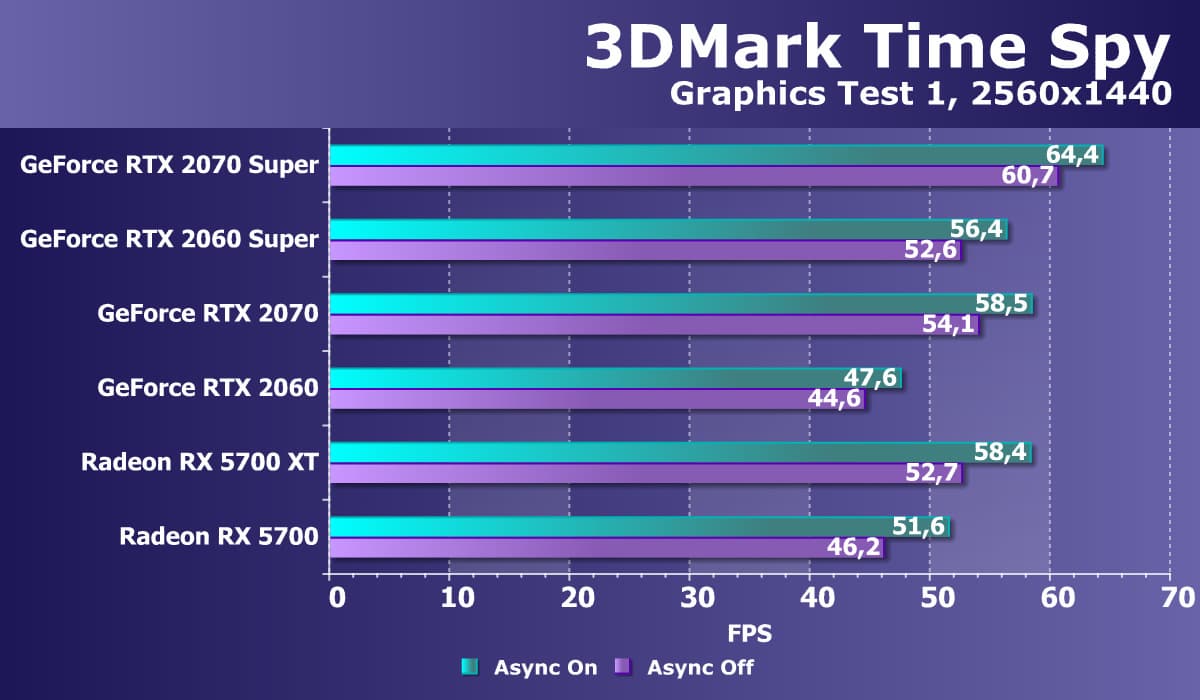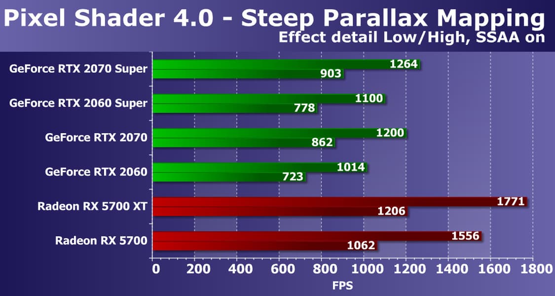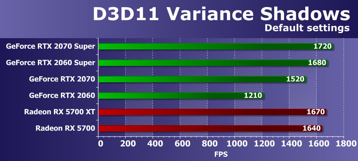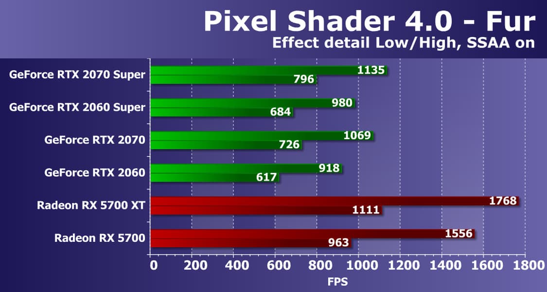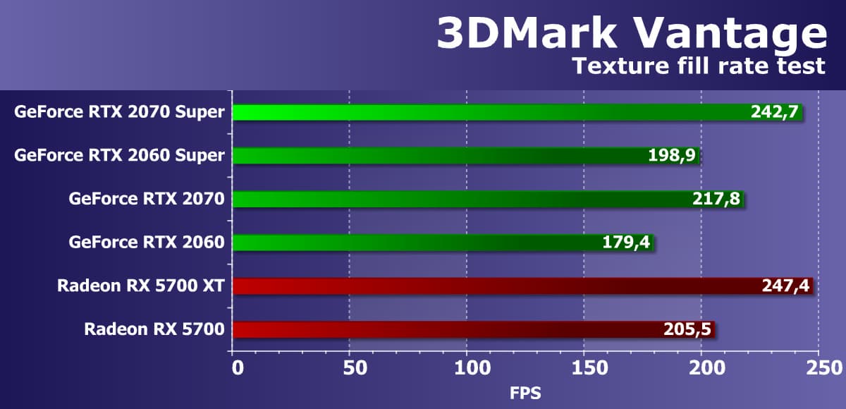 Хорошо видно, что GeForce RTX 2070 Super занял лидирующую позицию в своей группе, опередив даже более дорогой Radeon VII, не говоря уже о Radeon RX 5700 XT.