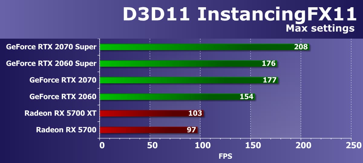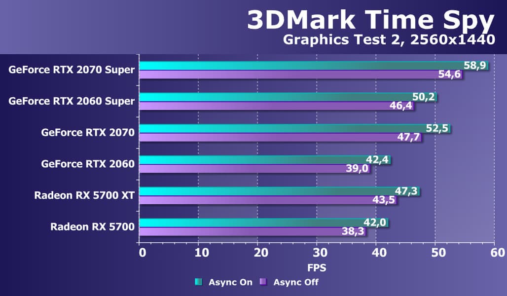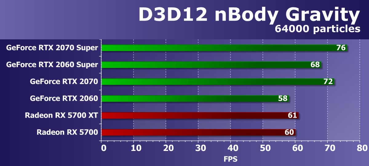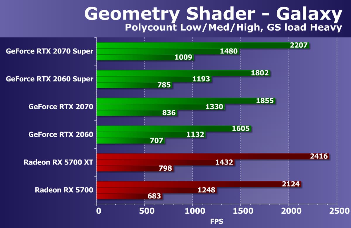 Хорошо видно, что GeForce RTX 2070 Super занял лидирующую позицию в своей группе, опередив даже более дорогой Radeon VII, не говоря уже о Radeon RX 5700 XT.