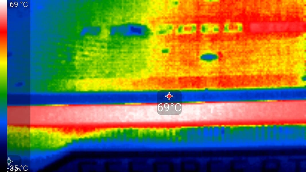В режиме максимальной нагрузки в 3D температура достигала 72 °C. Вентиляторы при этом раскручивались лишь до 1720-1770 оборотов в минуту, шум вырастал до 31,2 дБА у RTX 2070 Super и до 30,6 дБА у RTX 2060 Super. Так что у обеих карт шум различим, но с ним можно мириться. Еще раз отметим отличную эффективность СО у референс-карт от Nvidia в отличие от... (читатели догадаются).