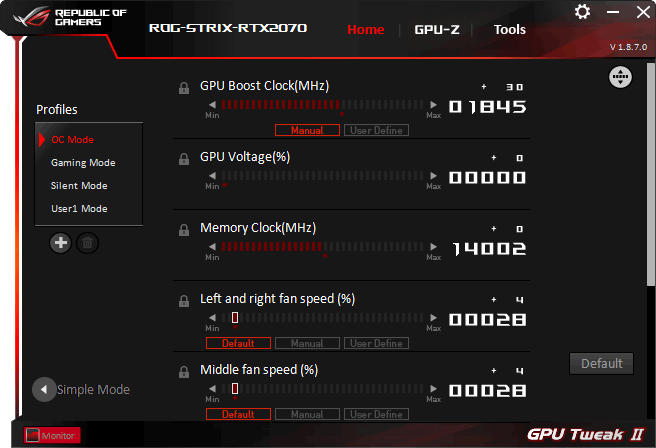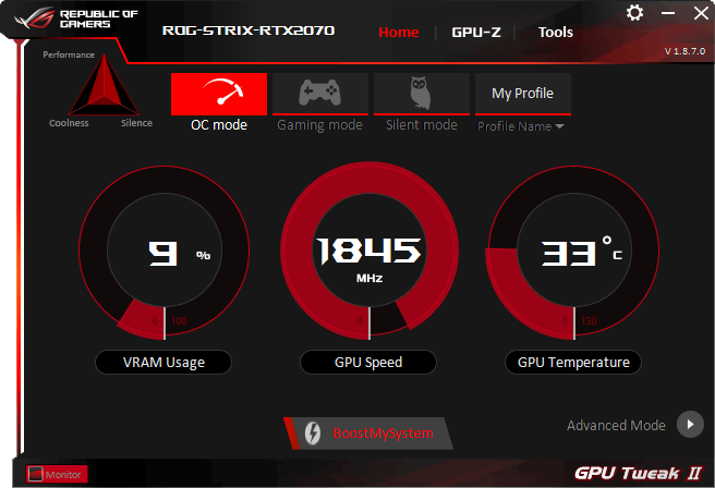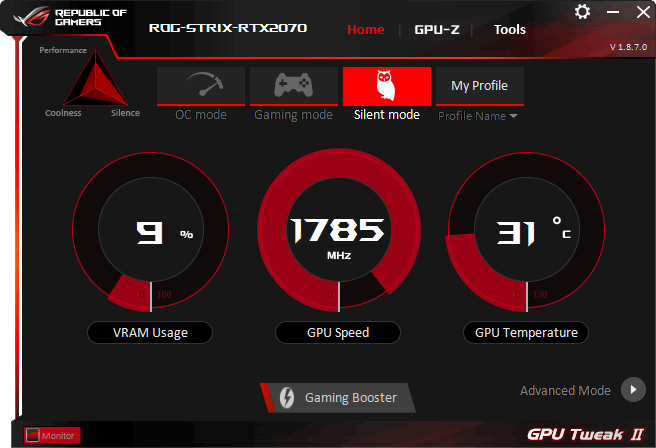Что касается конкретного протестированного нами видеоускорителя Asus Strix RTX 2070 8 ГБ OC (O8G), то все сказанное про RTX 2070 полностью относится и к этой карте, плюс у нее производительность на 4,5% выше референсного RTX 2070. А это значит, что данная карта Asus уже вплотную приближается по скорости к флагману прошлого поколения GTX 1080 Ti. Только представьте себе: новое поколение ускорителей уже почти из среднего сегмента (не хх80, а хх70!), может соперничать с самыми производительными видеокартами на GPU предыдущего поколения! И это мы еще молчим про потенциал разгона, а такого рода ускорители, особенно из серии Strix, очень неплохо разгоняются! Поэтому имеет смысл снова упомянуть мечту оверклокеров средней руки — Nvidia Scanner. Технология простая, как пробка: нажал на кнопку — и жди, оно само покрутит колесики и выдаст вам максимум скорости в разгоне. В частности, данная карта Asus продемонстрировала стабильную работу на частоте 2080/14200 МГц, а это гарантирует обгон [неразогнанного] GTX 1080 Ti! Также стоит упомянуть хорошую систему охлаждения у карты, а любителям моддинга наверняка понравится «умная» подсветка кулера (при желании отключаемая нажатием всего одной кнопки). Есть возможность штатно регулировать работу корпусных вентиляторов в зависимости от нагрева GPU (вентиляторы подключаются непосредственно к видеокарте).