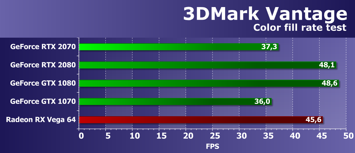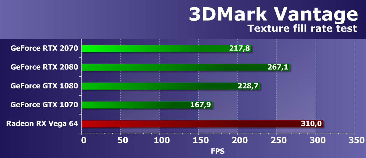 Как всегда в последнее время, в соперники для решений GeForce RTX у конкурирующей компании AMD выбрать нечего. Конкурентоспособные продукты, способные выступать на уровне GeForce RTX 2070, вряд ли появятся у AMD достаточно скоро. Поэтому для сравнения остается единственная видеокарта Radeon RX Vega 64, которая хоть и не может быть прямым соперником для GeForce RTX 2070 по цене, но близка к ней по характеристикам и в любом случае является наиболее производительным решением компании AMD.