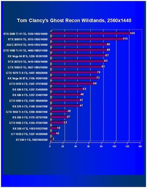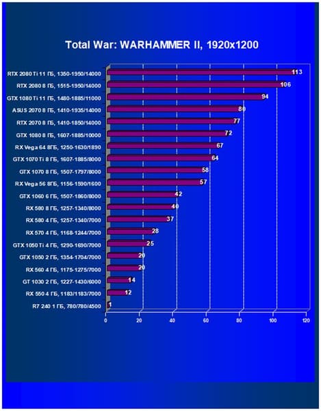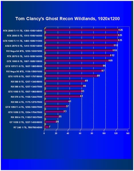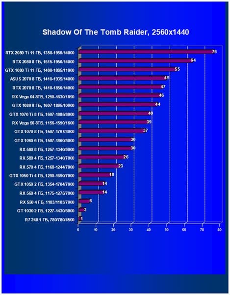 Мы видим, что в среднем по всем играм и разрешениям RTX 2070 быстрее даже чем GTX 1080 — почти на 13%! Более того, RTX 2070 оказался уже третьим новым ускорителем, который опередил самые быстрые акселераторы AMD на сегодня — Radeon RX Vega 64 (+12,5%) и RX Vega 56 (+33,6%), при том что Vega 56 по цене сравнима с RTX 2070, а Vega 64 сильно дороже. И из всех карт предыдущего поколения лишь GTX 1080 Ti (флагман!) оказался немного быстрее.