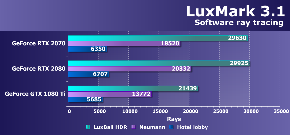 Недавно мы обновили пакет синтетических тестов, он все еще экспериментальный и, скорее всего, будет меняться. Мы бы хотели добавить еще больше примеров с вычислениями (compute shaders), но один из распространенных таких бенчмарков CompuBench пока что не работает на GeForce RTX. В будущем постараемся расширить и улучшить свой набор синтетических тестов, и если у вас есть четкие и обоснованные предложения — напишите их в комментариях к статье или отправьте почтой.