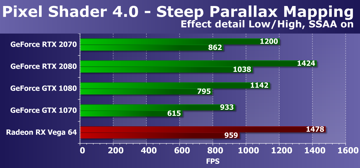 Из ранее активно использовавшихся тестов RightMark3D 2.0 мы оставили лишь несколько самых тяжелых вариантов. Остальные уже изрядно устарели и на столь мощных GPU упираются в различные ограничители, не загружают работой блоки графического процессора и не показывают истинную его производительность. А вот синтетические Feature-тесты из набора 3DMark Vantage мы пока что решили оставить в полном составе, так как заменить их попросту нечем, хотя и они уже устарели.