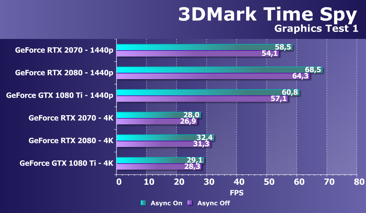 В общем, по сравнению с условными конкурентами из предыдущего поколения, у GeForce RTX 2070 есть свои сильные и слабые стороны. Даже в существующих игровых приложениях GeForce RTX 2070 должна показать достаточно высокую скорость — несколько выше, чем у GeForce GTX 1080, а иногда доставая даже до GTX 1080 Ti. И в целом это очень неплохой уровень. А что самое приятное — цена новинки радует куда больше стоимости топовой модели семейства Turing, да и потенциал для снижения цены у RTX 2070 остается.