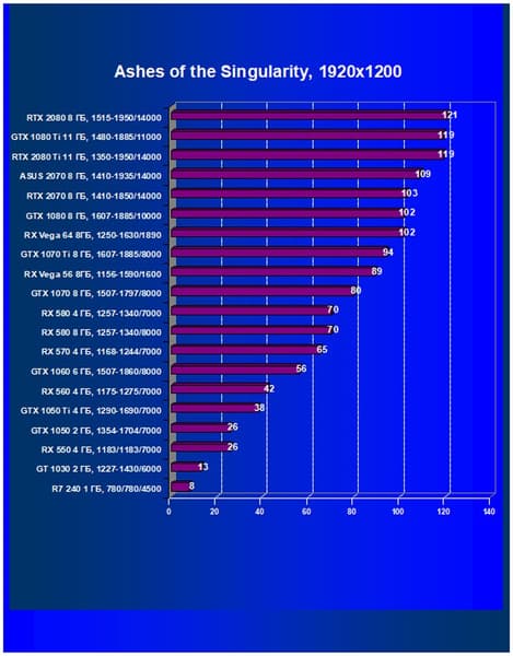 | 06 | Asus 2070 8 ГБ, 1410—1935/14000 | 900 | 3780 | 42 000 |