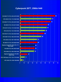 | 13 | RX 6600 XT 8 ГБ, 2359—2664/16000 | 396 | 57 | 70 000 |